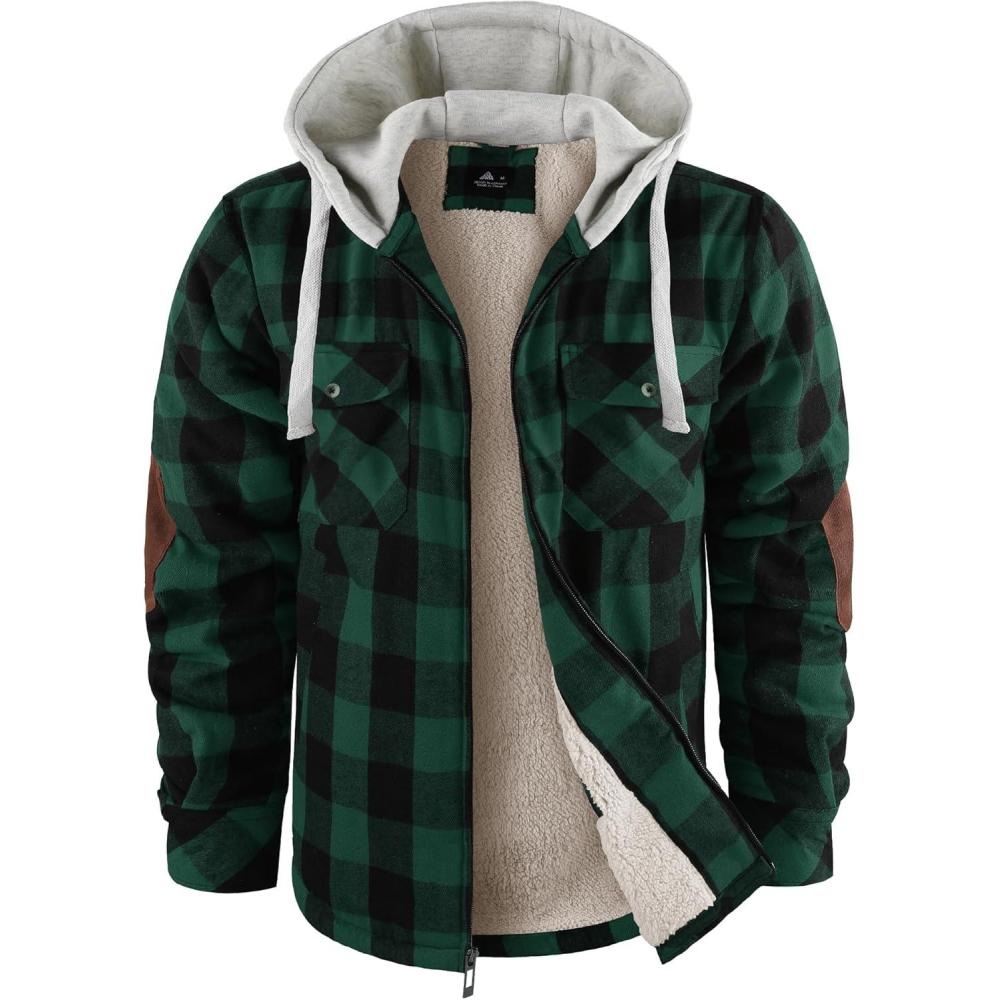 ZITY Men's Flannel Hooded Jacket Fleece Sherpa Lined Plaid Shirts Jackets Zip Up Sweatshirt Hoodies for Men with 4 Pockets(Gray Green)