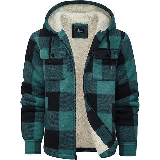 ZITY Men's Flannel Hooded Jacket Fleece Sherpa Lined Plaid Shirts Jackets Zip Up Sweatshirt Hoodies for Men with 4 Pockets(Green)