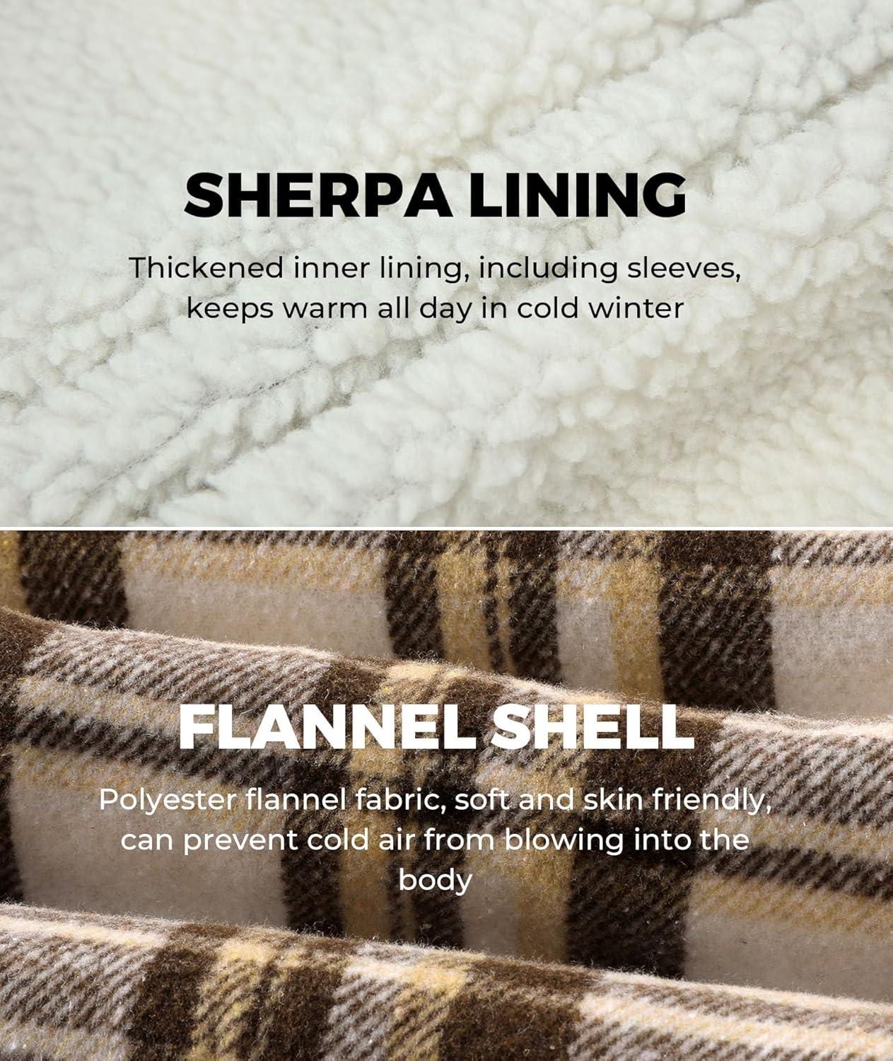 ZITY Men’s Flannel Hooded Jacket Fleece Sherpa Lined Plaid Shirts Jackets Zip Up Sweatshirt Hoodies for Men with 4 Pockets(Khaki)