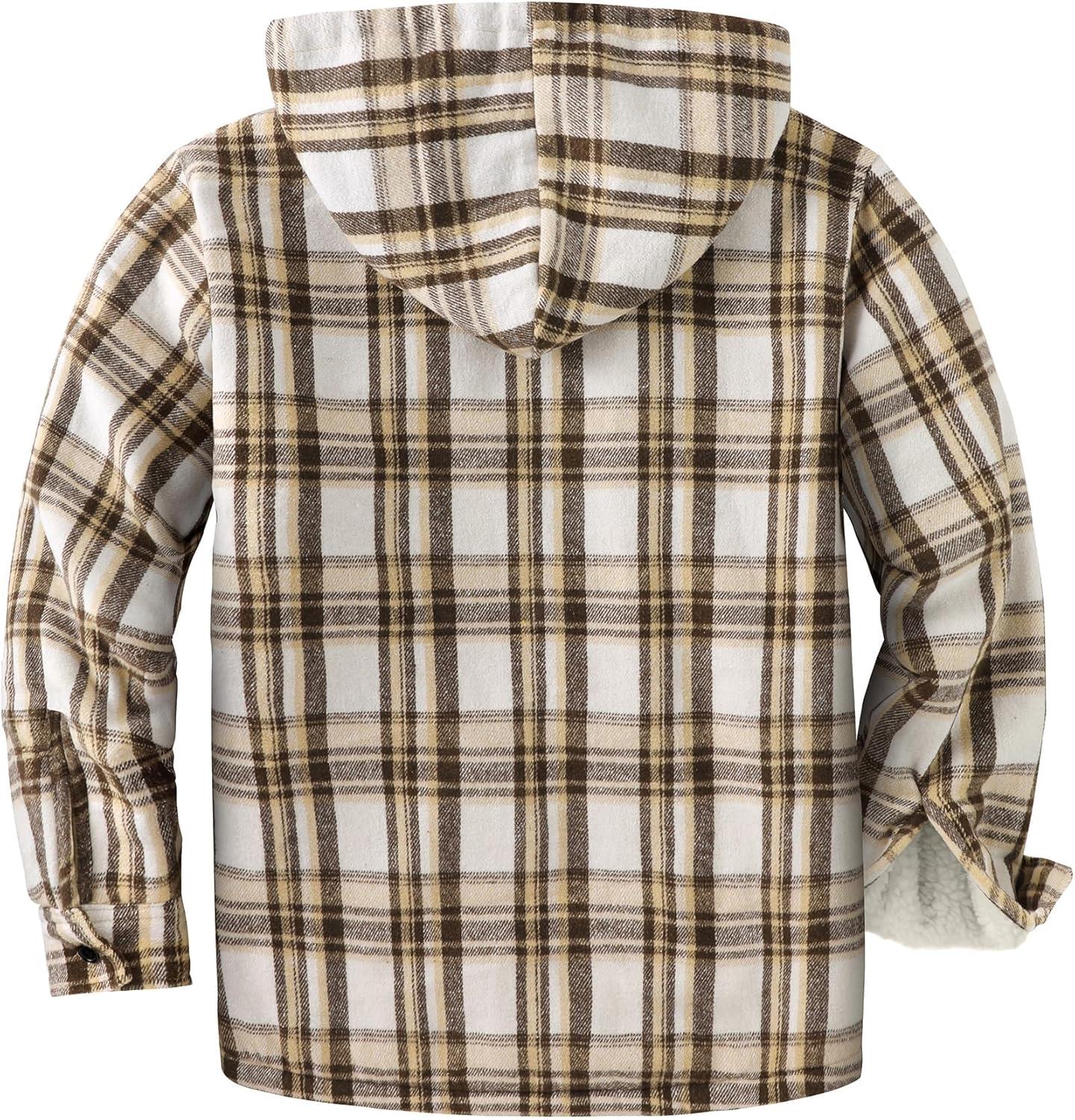 ZITY Men's Flannel Hooded Jacket Fleece Sherpa Lined Plaid Shirts Jackets Zip Up Sweatshirt Hoodies for Men with 4 Pockets(Khaki)
