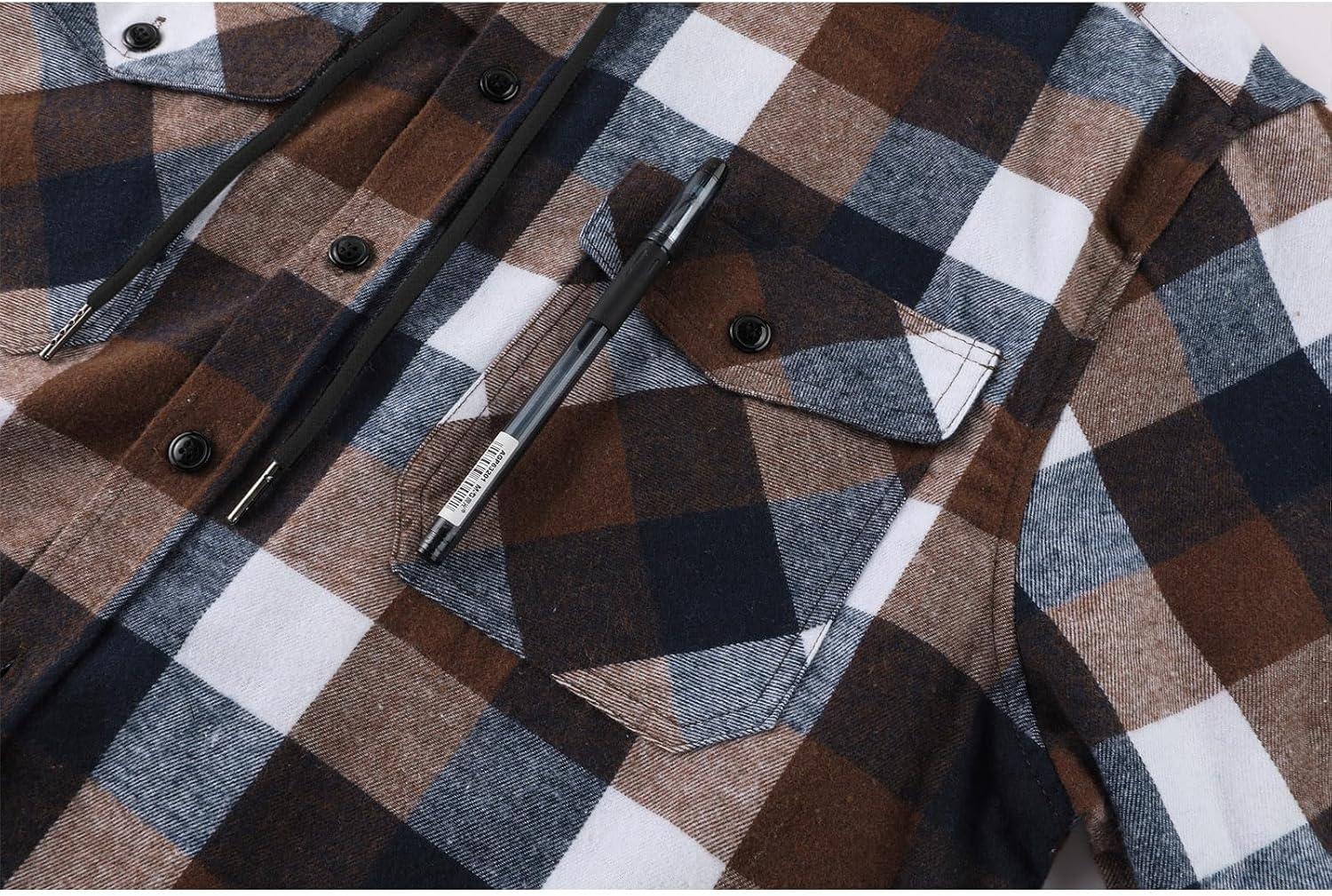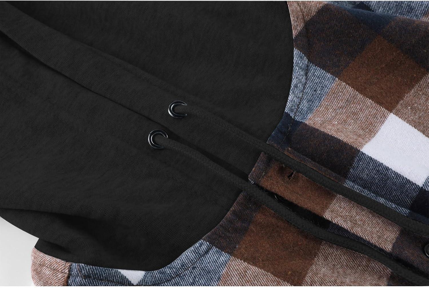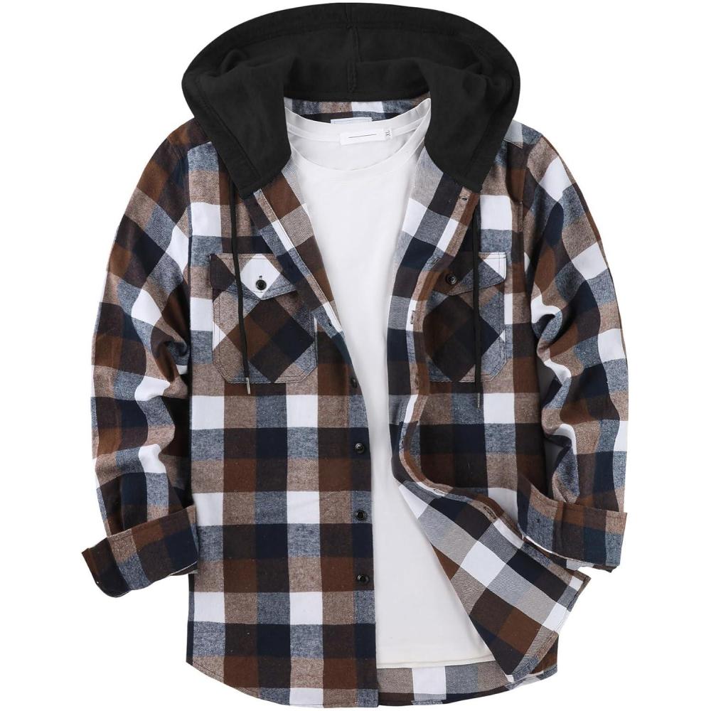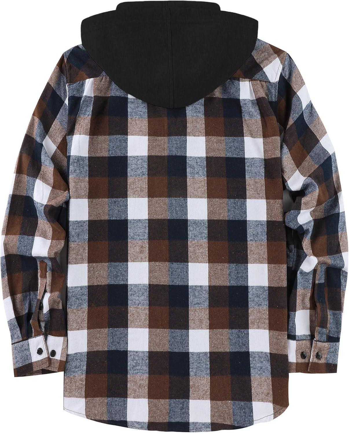 ZITY Men’s Flannel Hoodie Shirts Casual Button Down Plaid Shirt Jackets for Men Long Sleeve Stylish Hooded with Pocket(Brown White)
