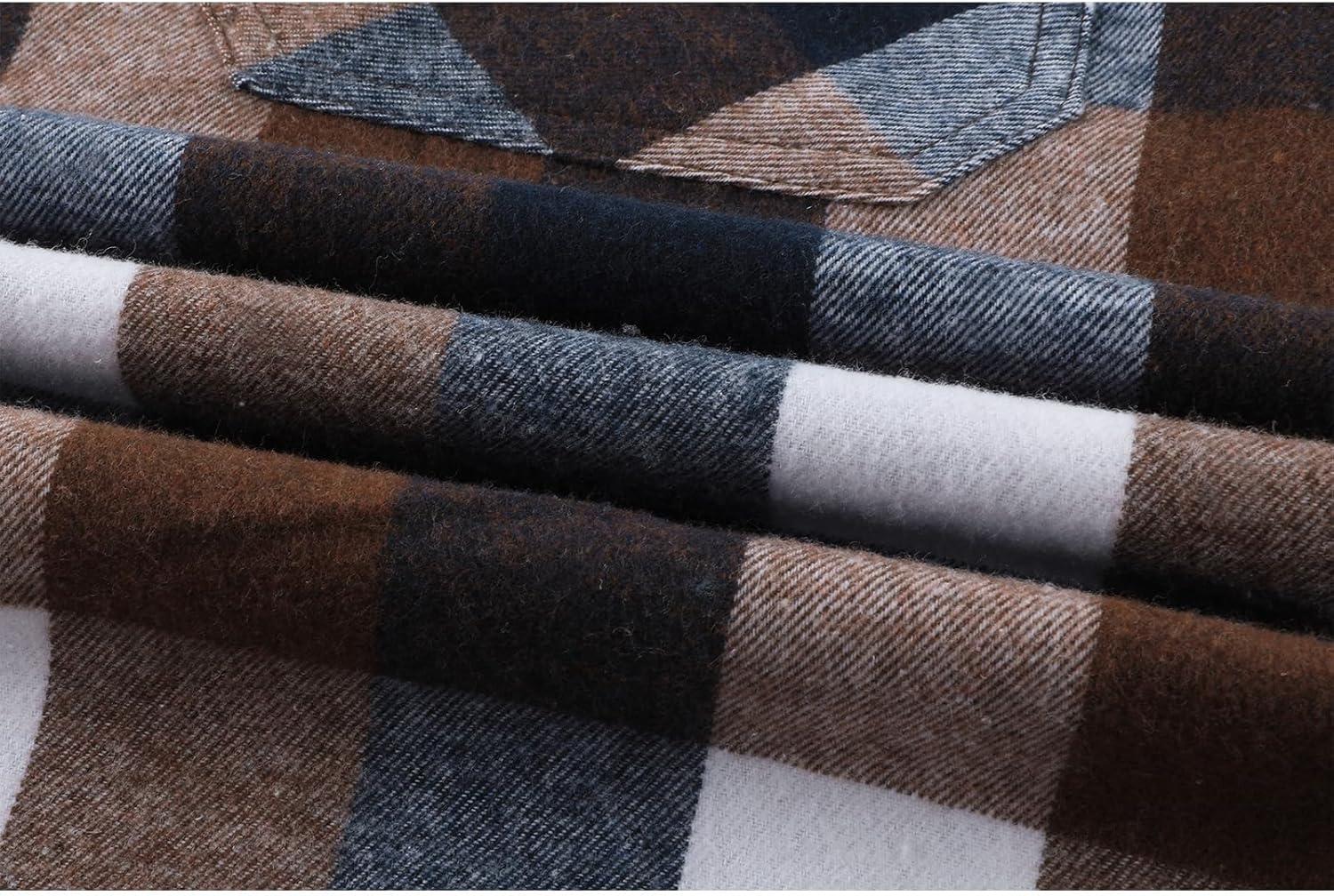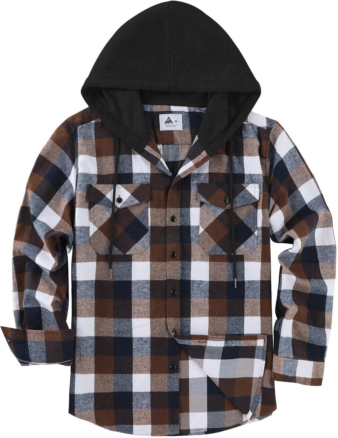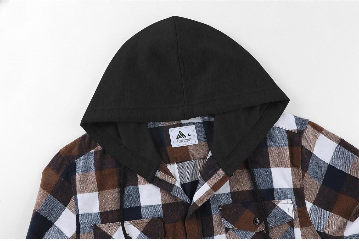 ZITY Men’s Flannel Hoodie Shirts Casual Button Down Plaid Shirt Jackets for Men Long Sleeve Stylish Hooded with Pocket(Brown White)