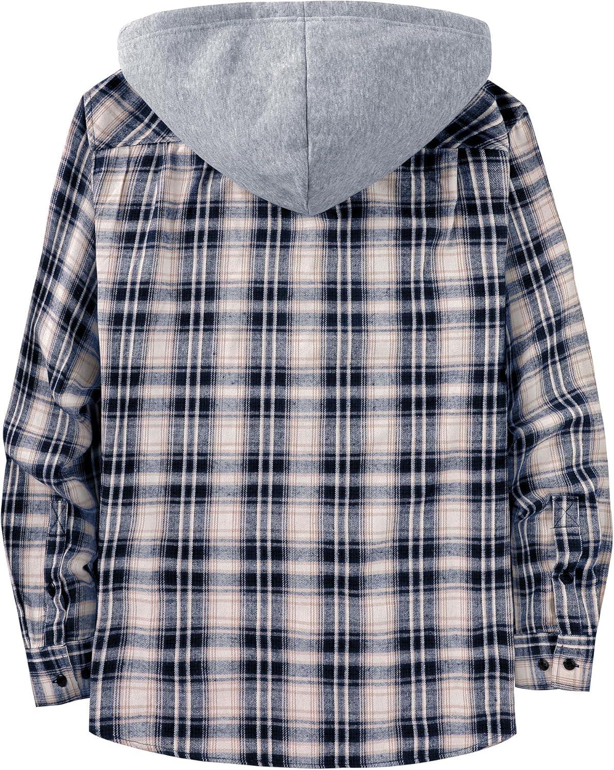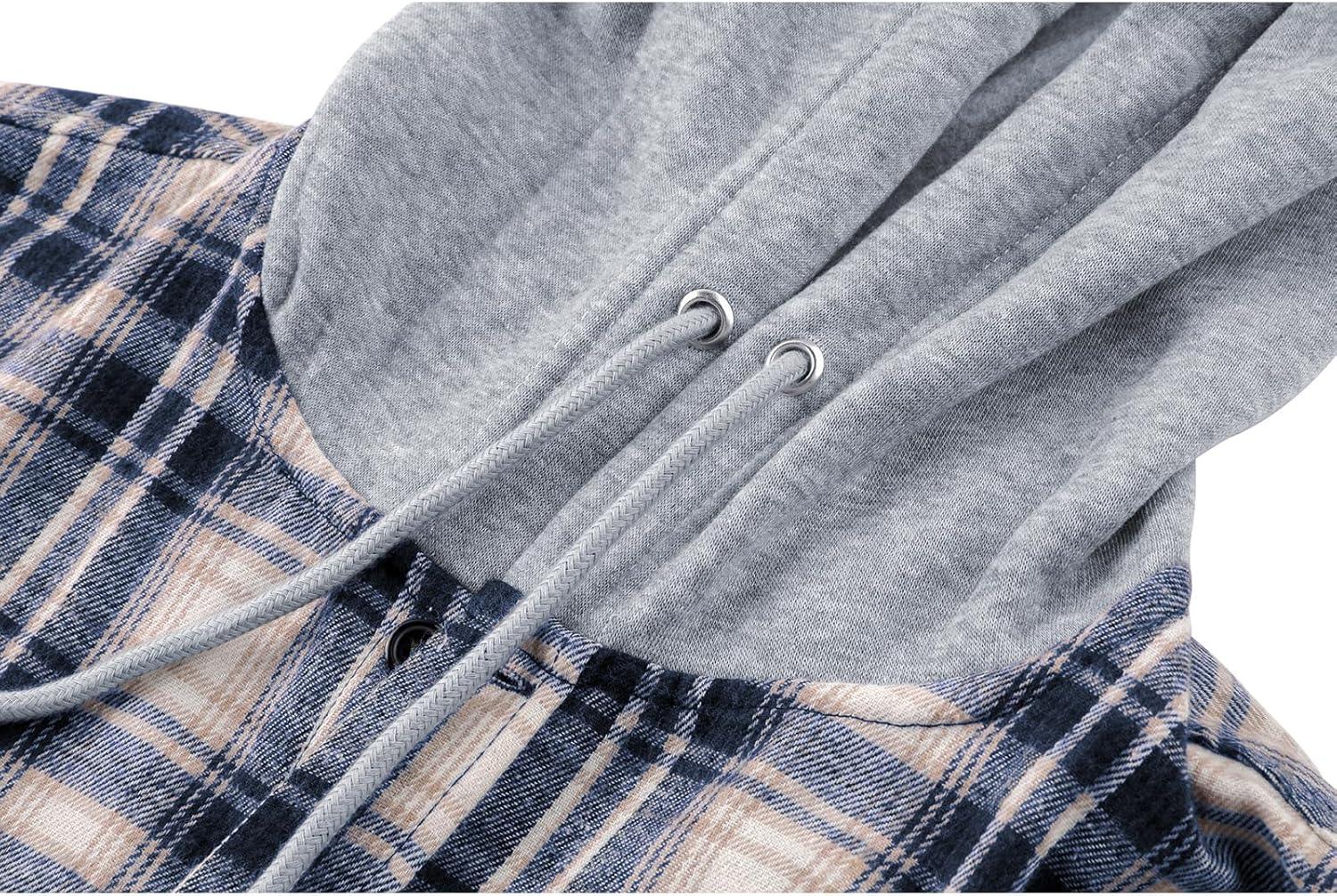 ZITY Men’s Flannel Hoodie Shirts Casual Button Down Plaid Shirt Jackets for Men Long Sleeve Stylish Hooded with Pocket(Dark Grey)