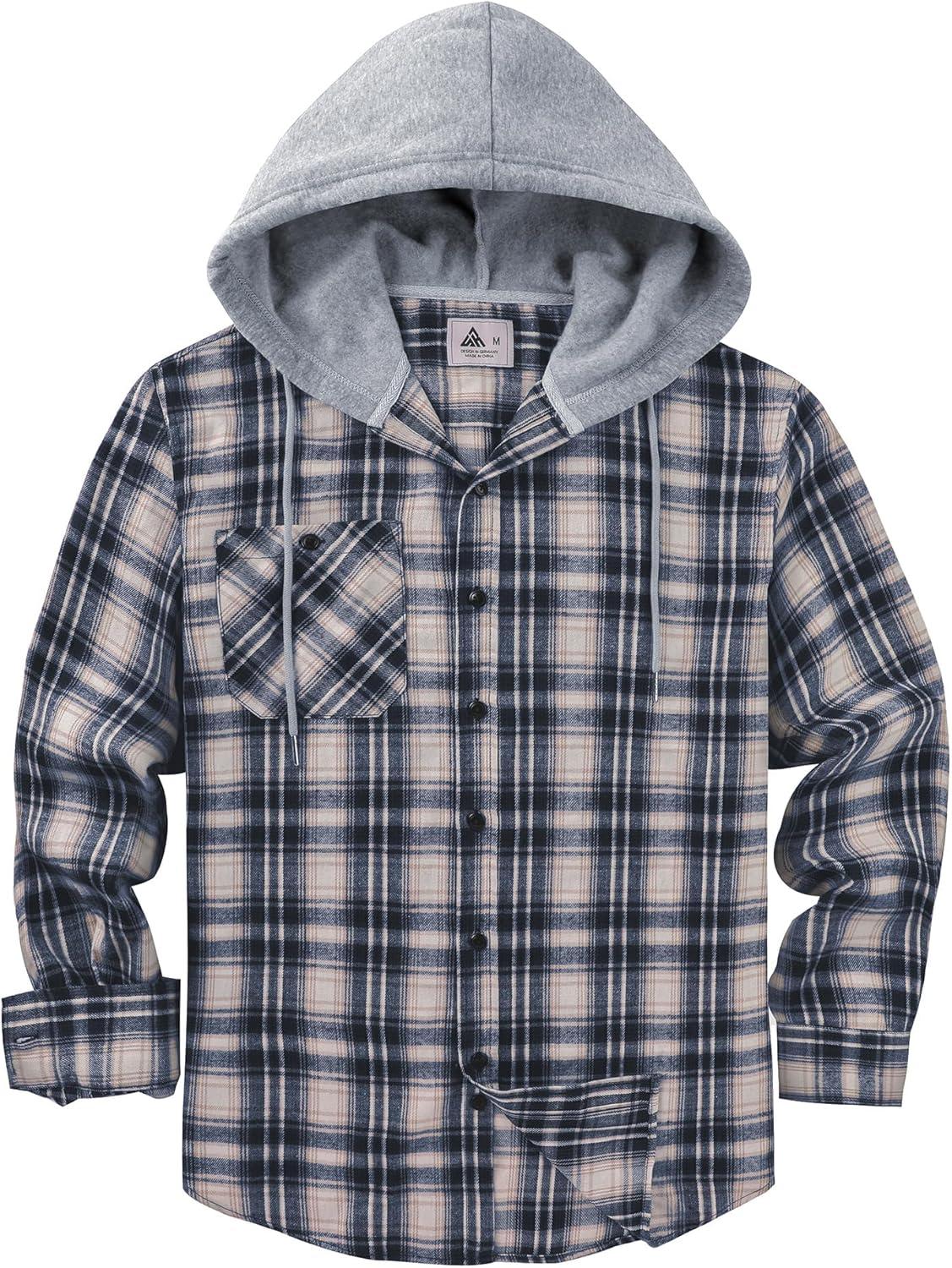 ZITY Men’s Flannel Hoodie Shirts Casual Button Down Plaid Shirt Jackets for Men Long Sleeve Stylish Hooded with Pocket(Blue Green Navy)