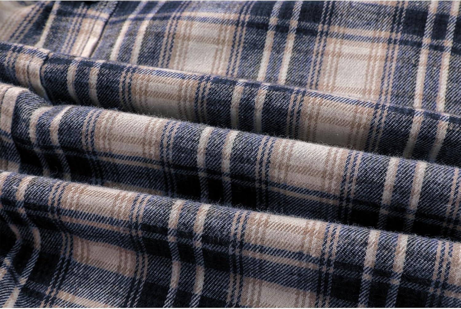 ZITY Men’s Flannel Hoodie Shirts Casual Button Down Plaid Shirt Jackets for Men Long Sleeve Stylish Hooded with Pocket(Dark Blue White)