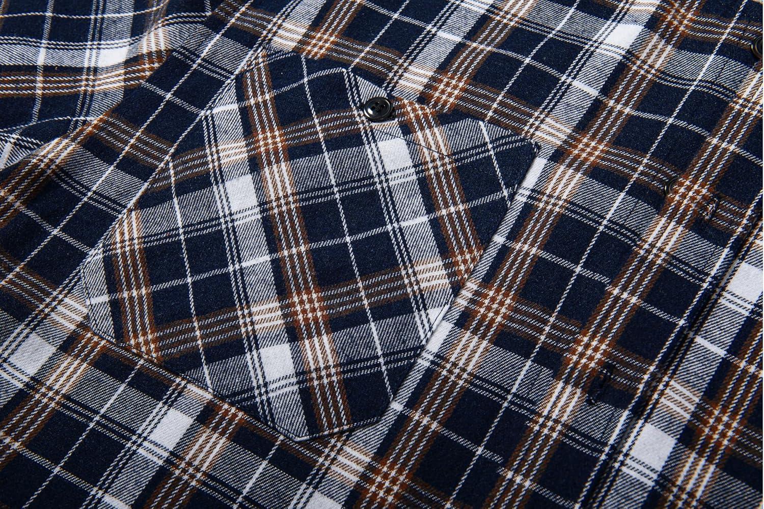 ZITY Men’s Flannel Hoodie Shirts Casual Button Down Plaid Shirt Jackets for Men Long Sleeve Stylish Hooded with Pocket(Orange Blue)