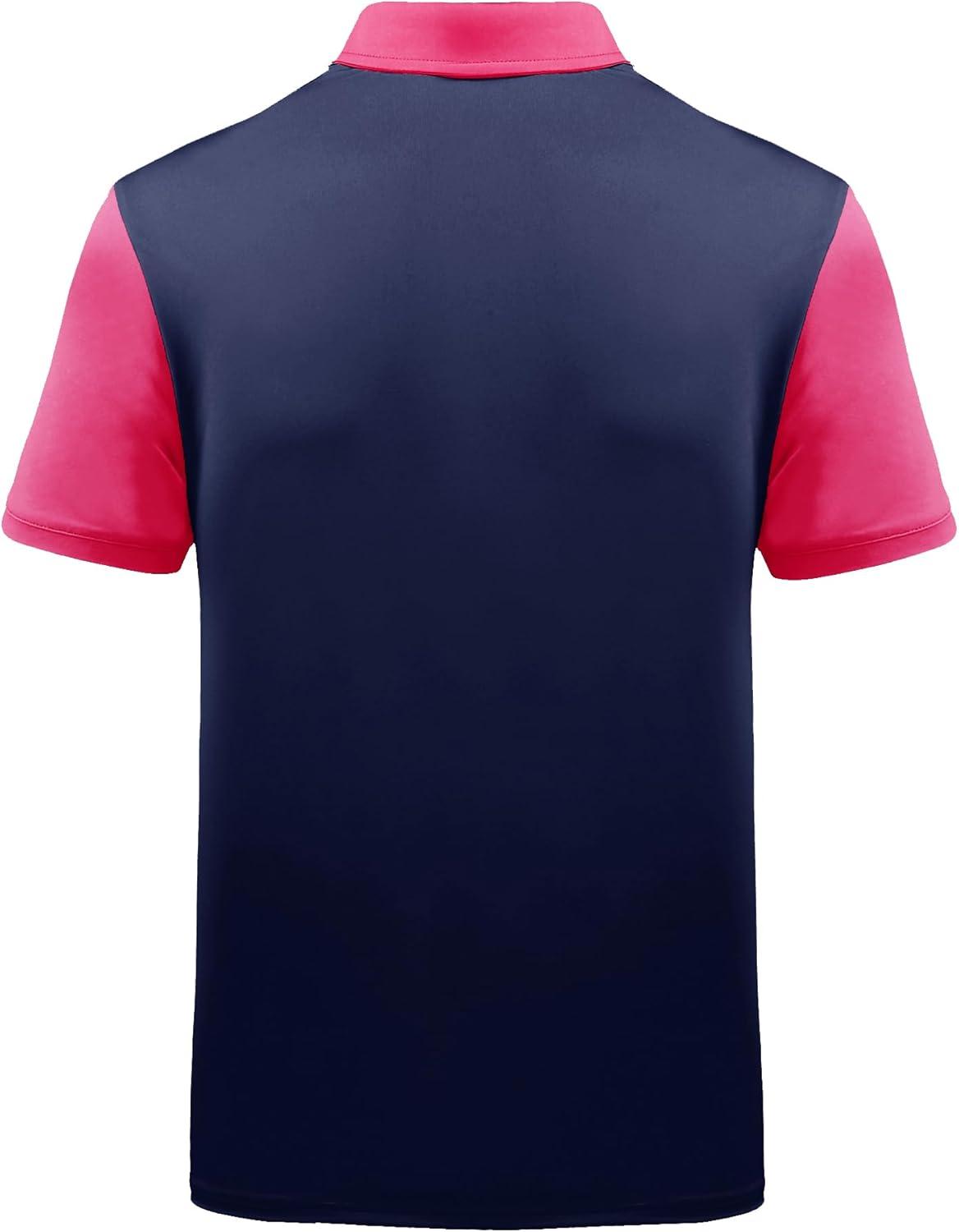 ZITY Mens Golf Shirt Short Sleeve Sport Moisture Wicking Performance Print Golf Polo Shirts for Men Collared Casual T-Shirt(Rose Red)
