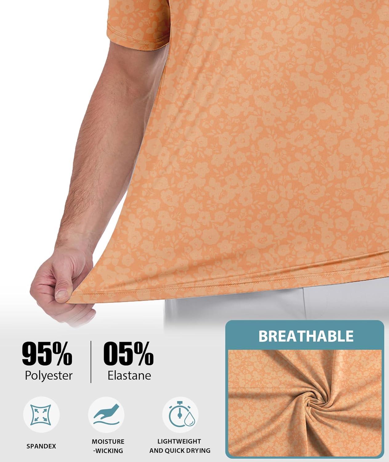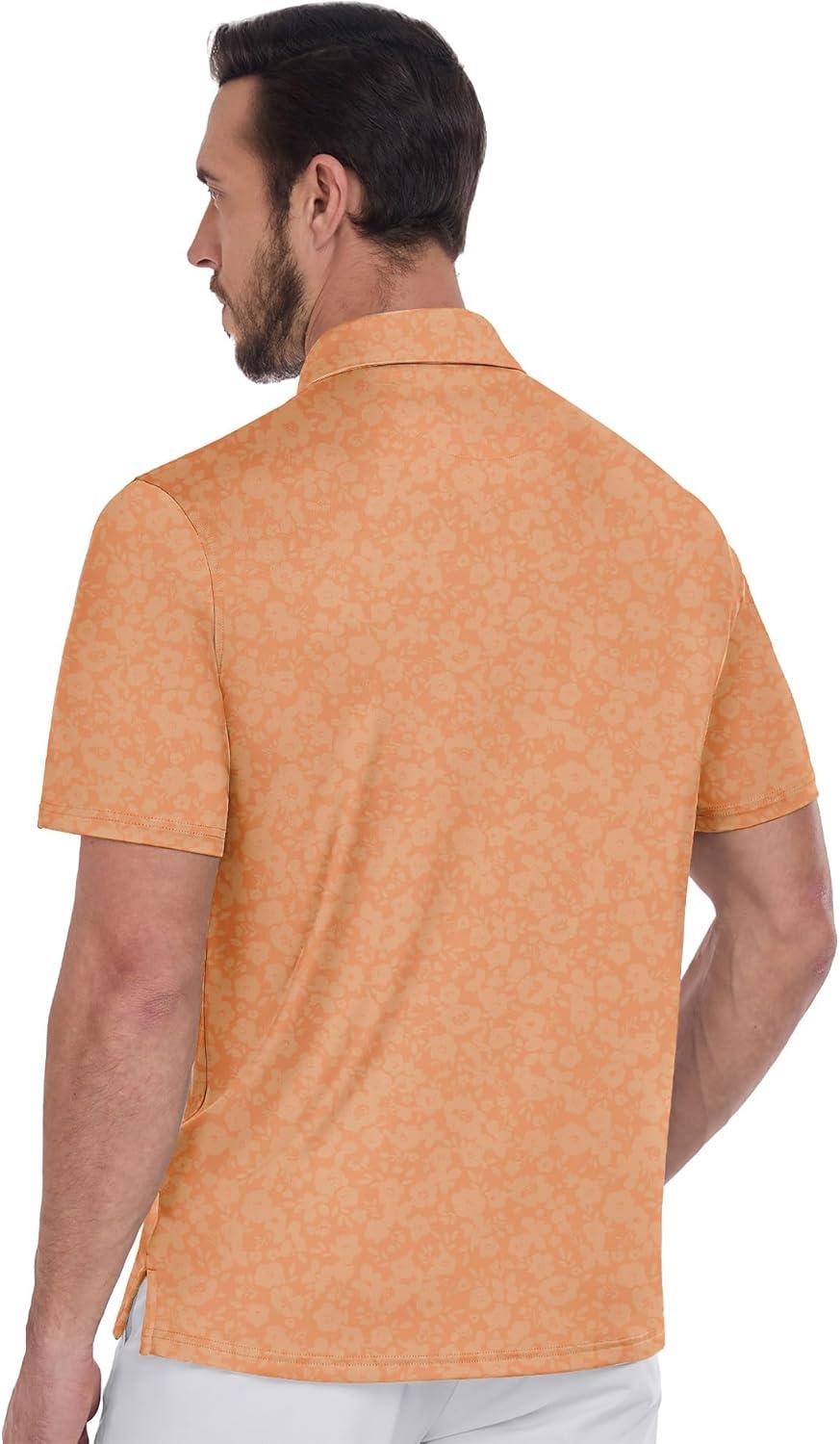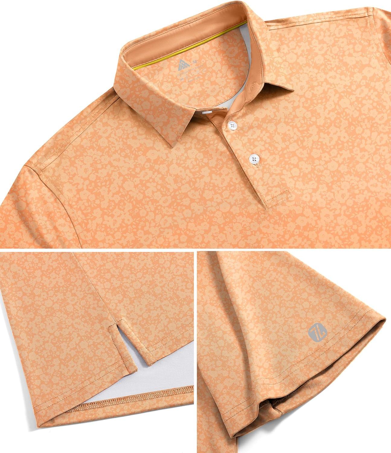 ZITY Mens Golf Shirts Short Sleeve Print Patterns Performance Moisture Wicking Polo Shirt(Light Orange Flower)