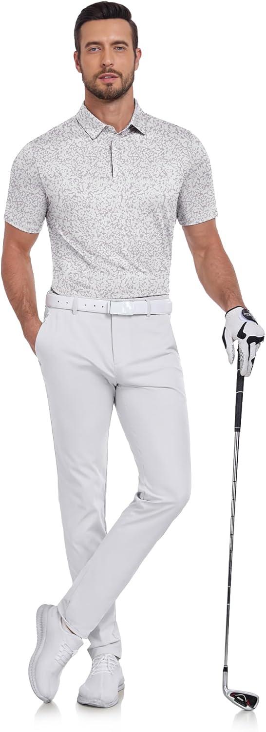 ZITY Mens Golf Shirts Short Sleeve Print Patterns Performance Moisture Wicking Polo Shirt(White Blue Stripes)