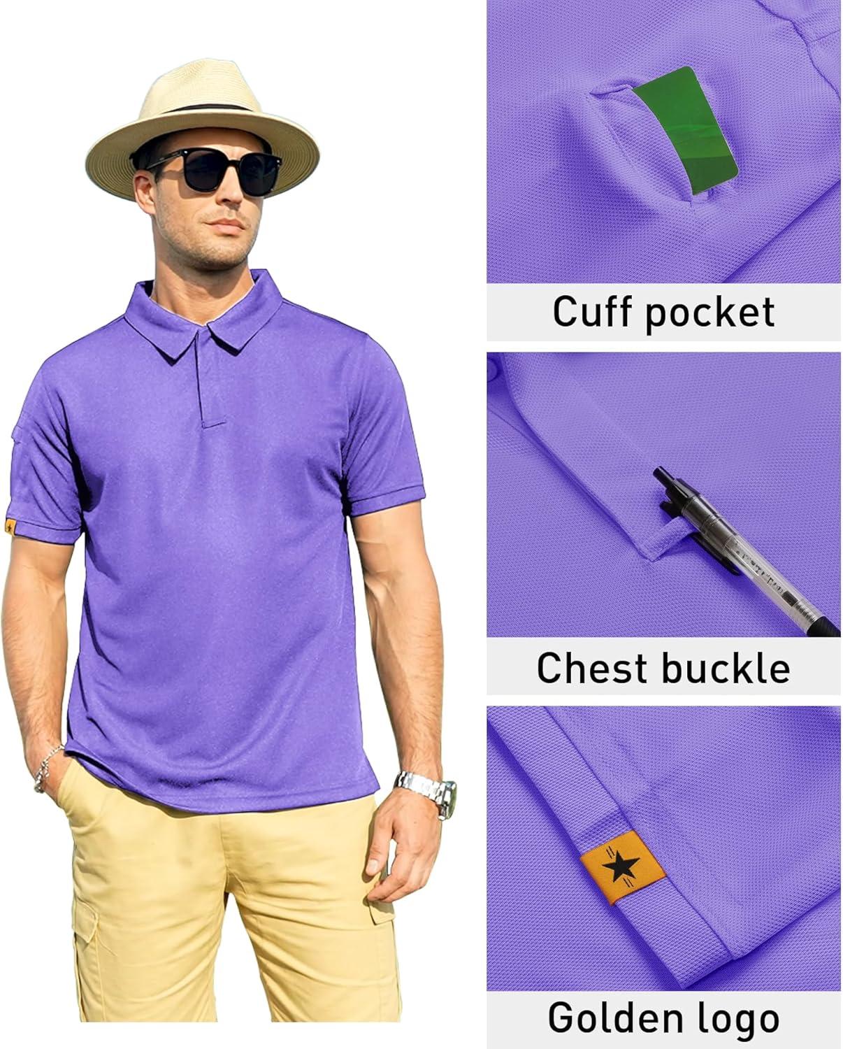ZITY Mens Polo Shirt Short Sleeve Sports Tactical T-Shirt Athletic Golf Polos Daily Casual Stylish Collared Shirts for Men(Purple)