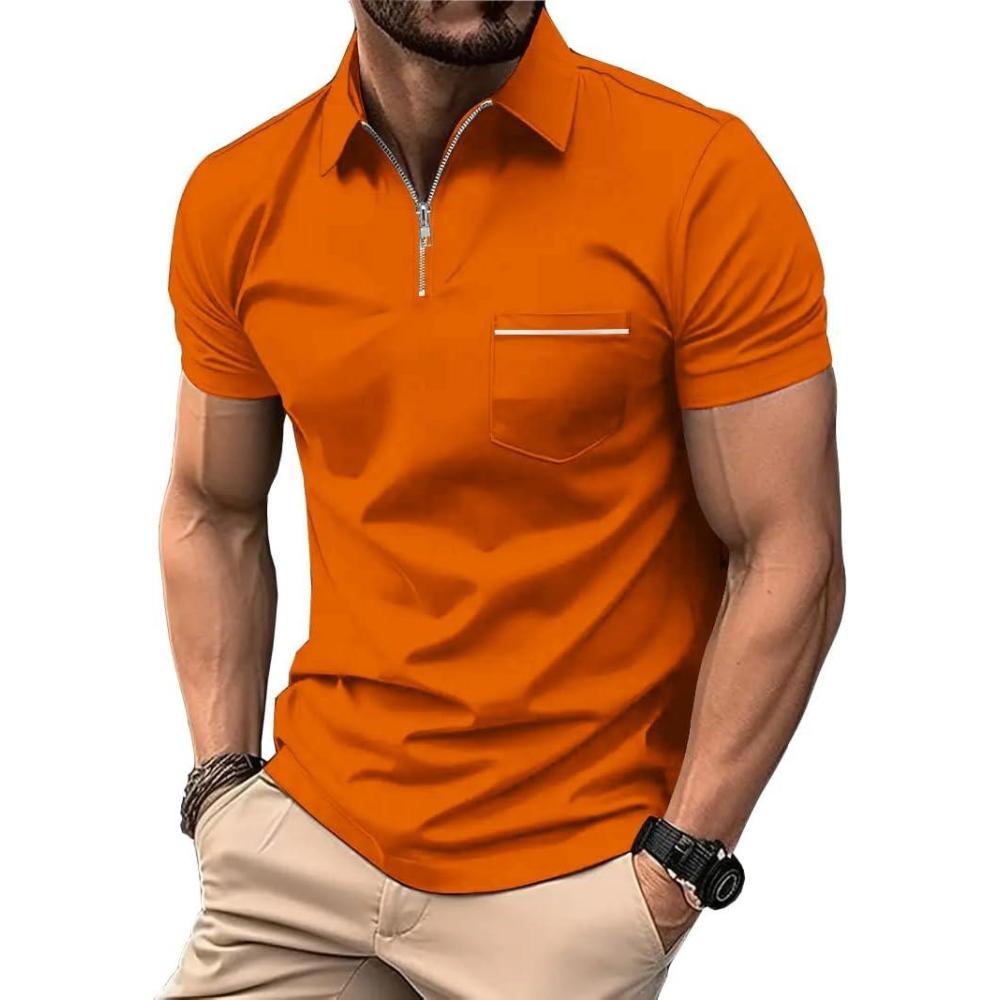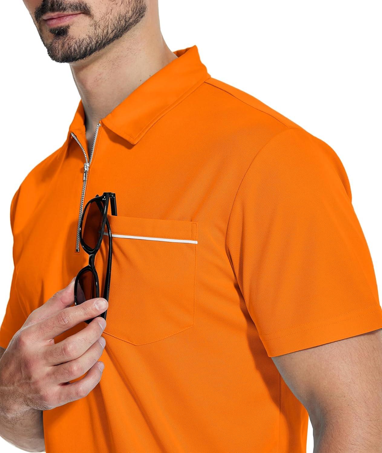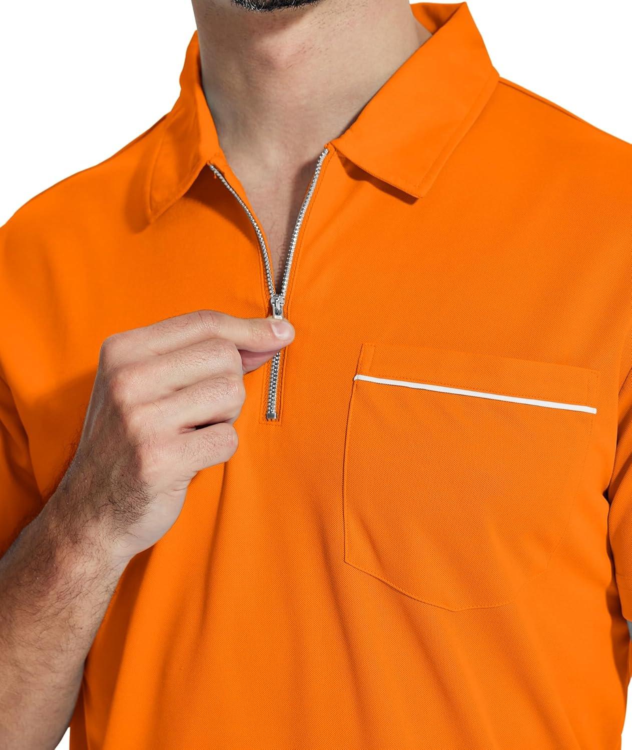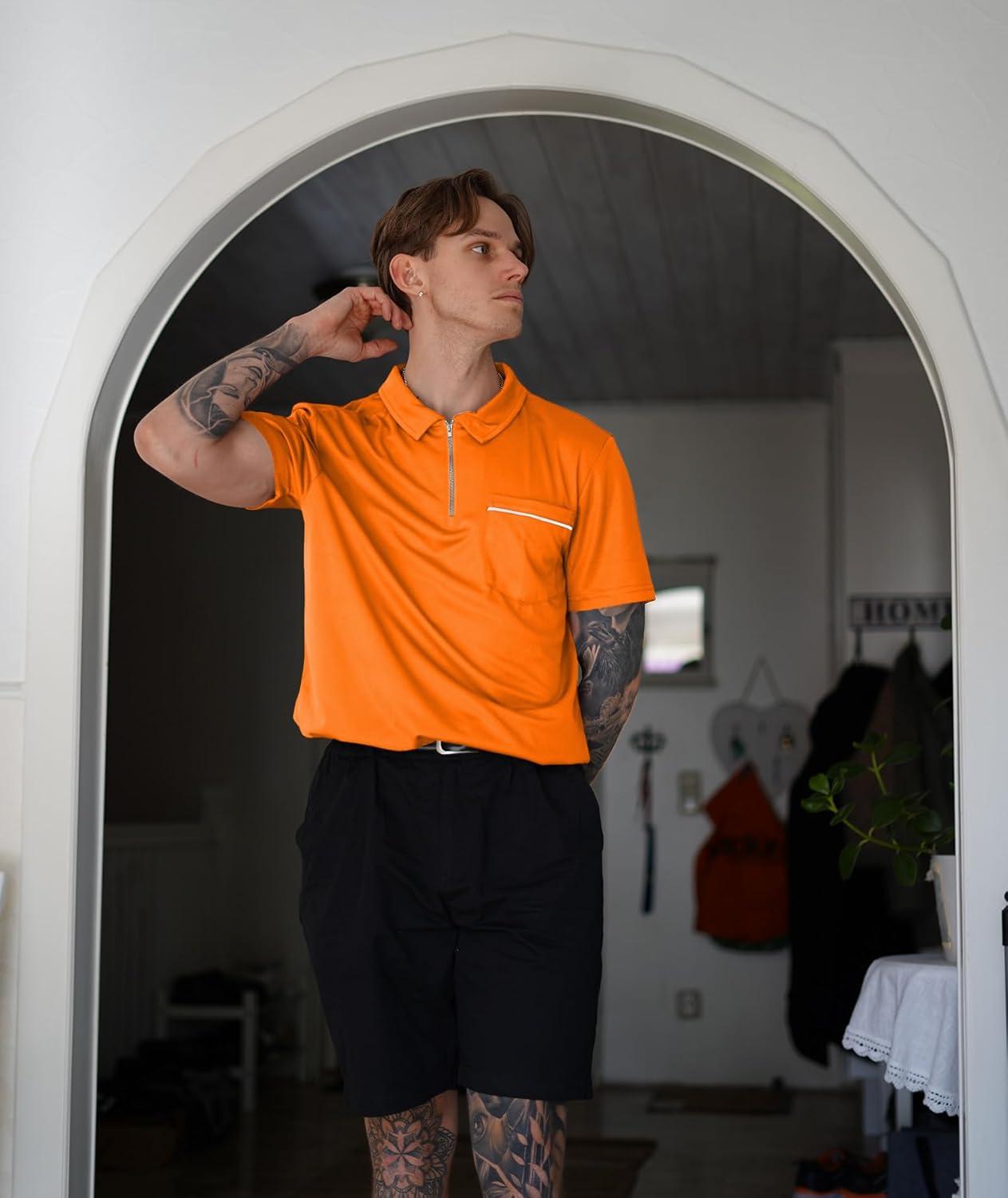 ZITY Mens Polo Shirts Quarter Zip Shirts Casual Classic Lightweight Short Sleeve Golf Collared Shirt with Pocket(Orange)