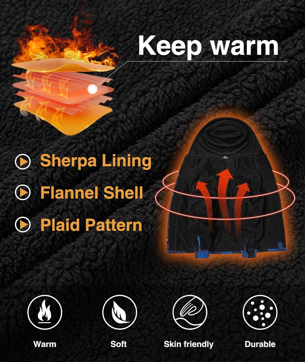 Be the first to review “ZITY Mens Sherpa Flannel Shirt Jacket Plaid Fleece Lined Hoodie Full Zip Long Sleeve Winter Warm Coat for Men(Blue)”