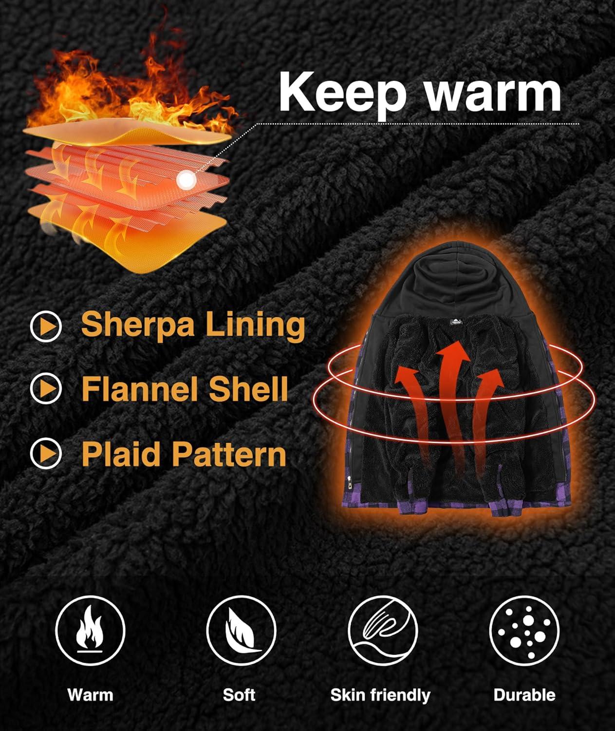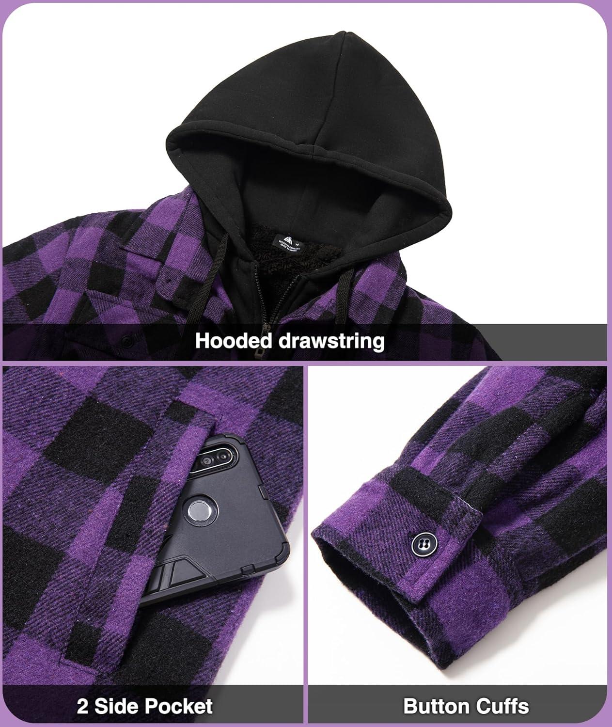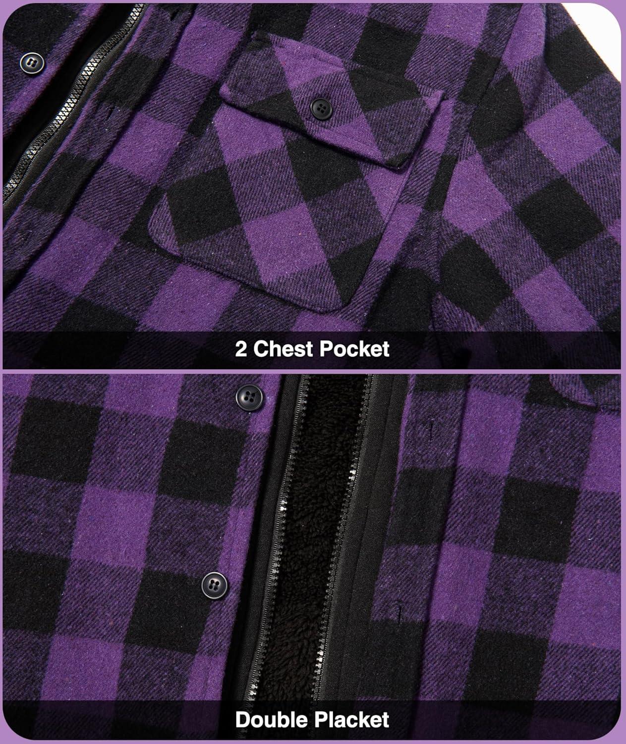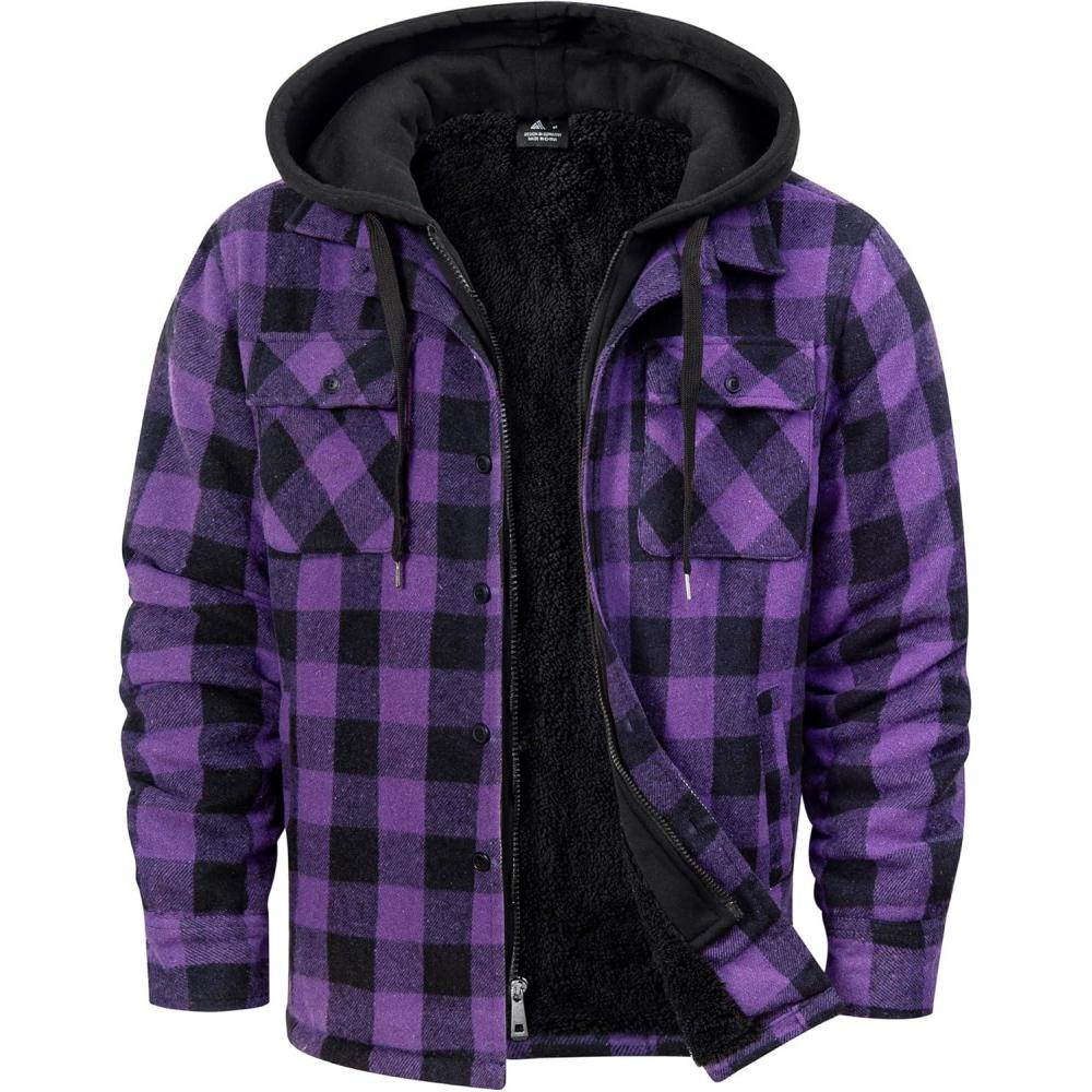 Get more for your money with our exclusive bundle deals on ZITY Mens Sherpa Flannel Shirt Jacket Plaid Fleece Lined Hoodie Full Zip Long Sleeve Winter Warm Coat for Men(Purple) and accessories.