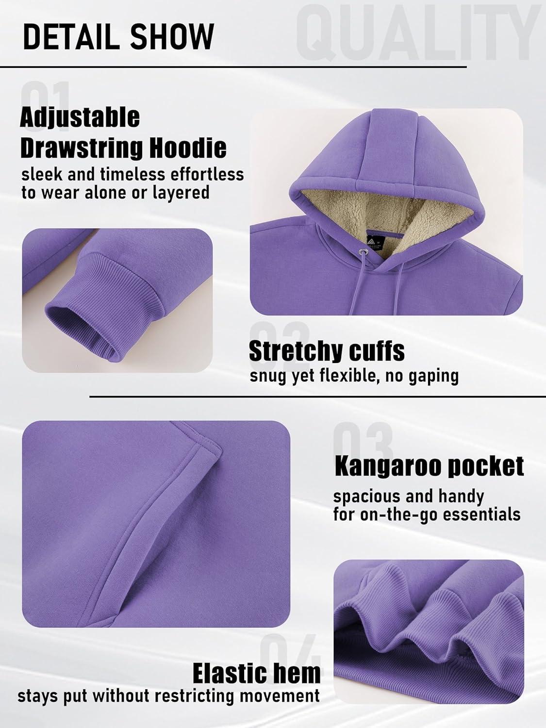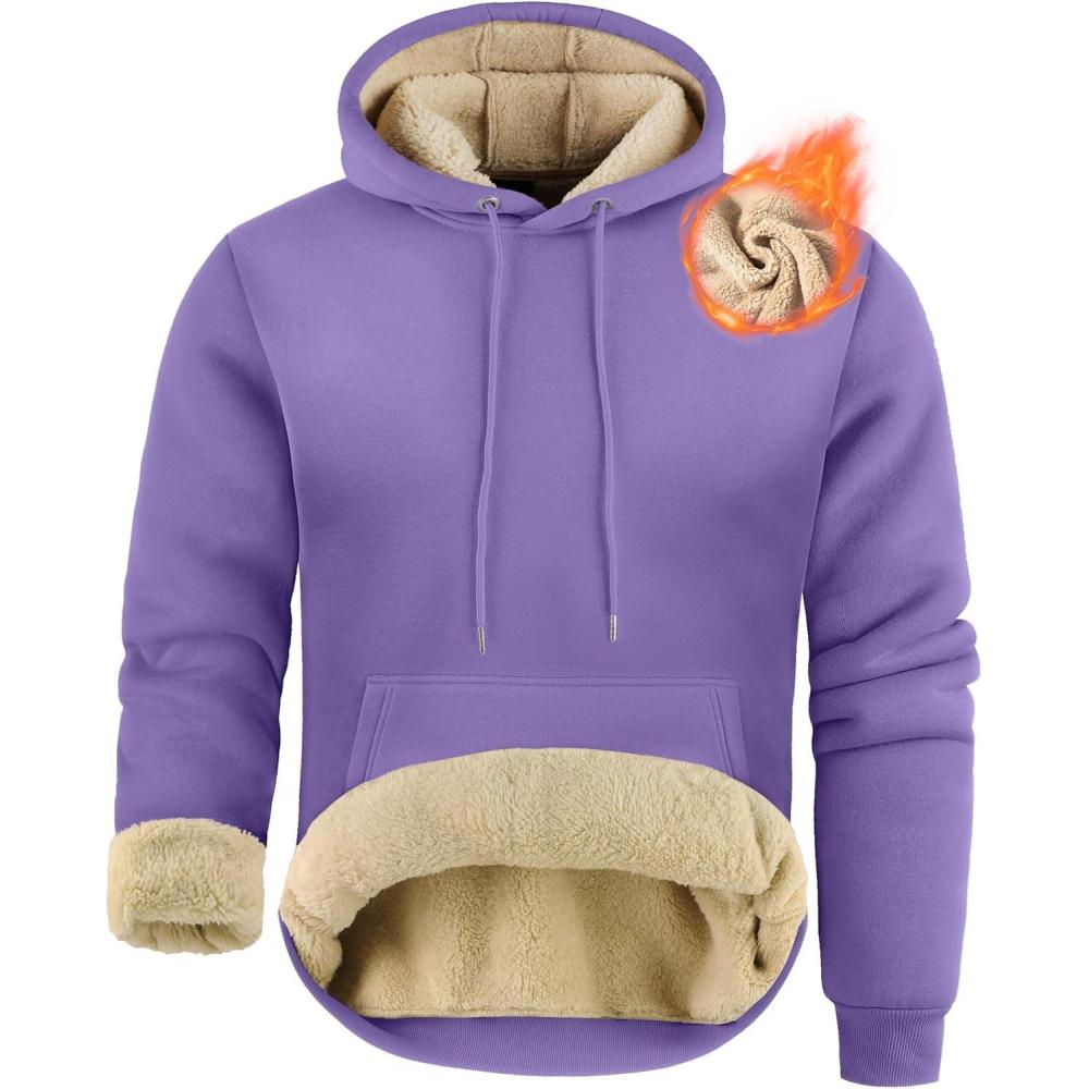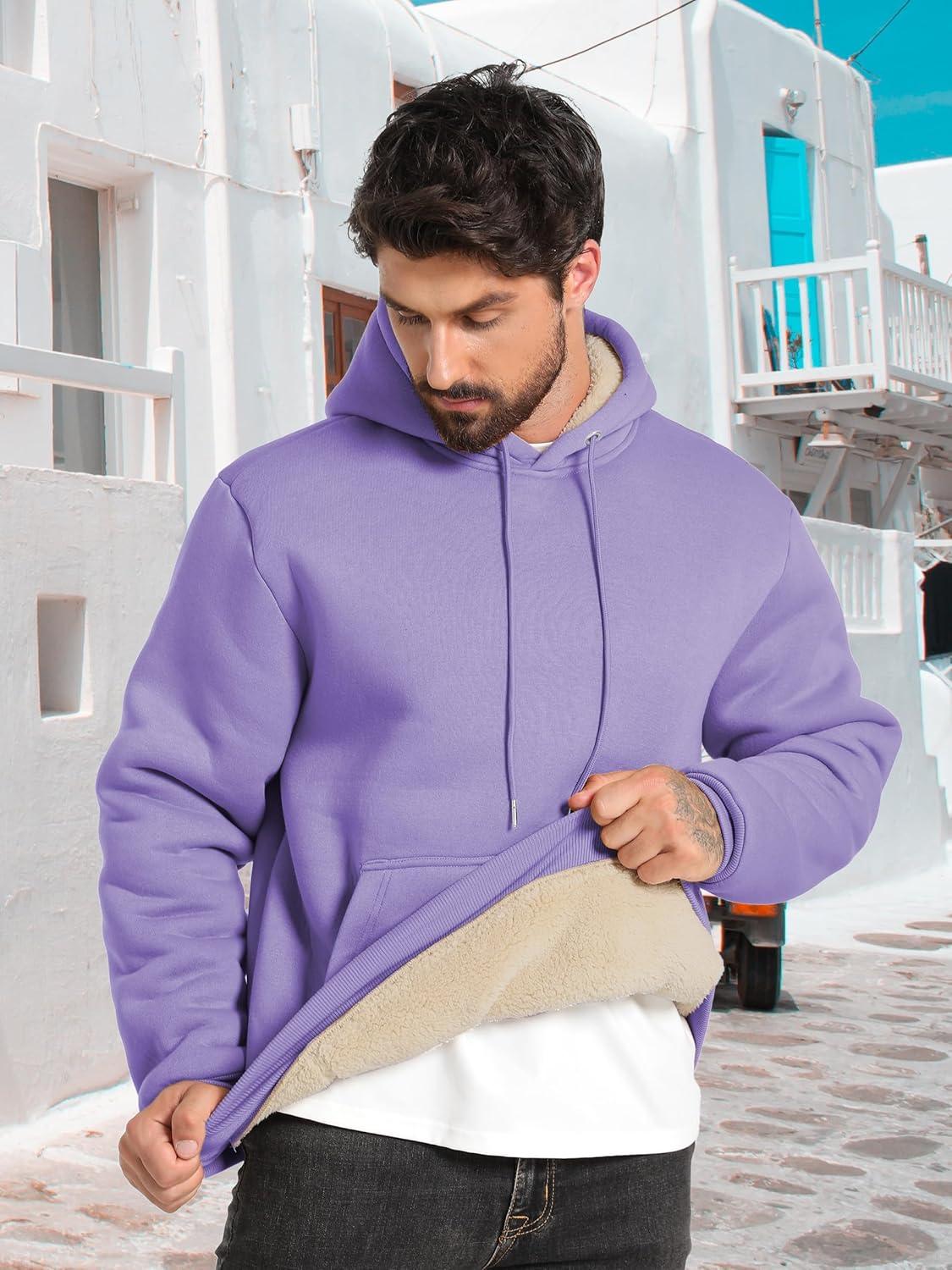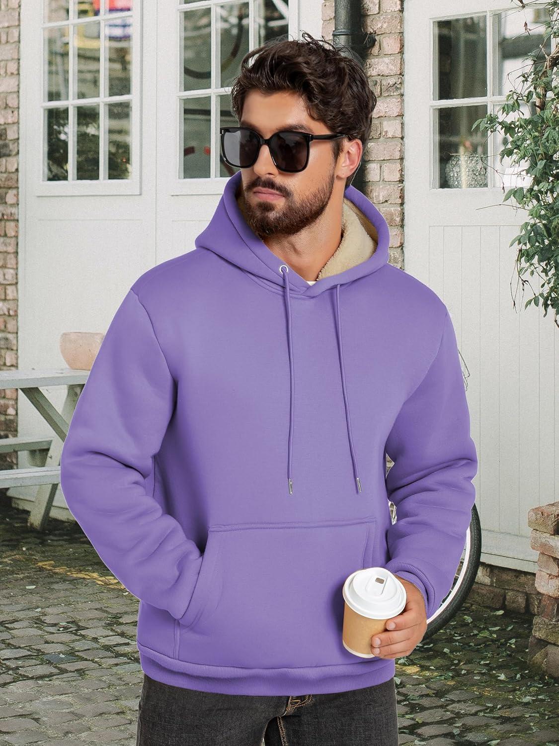 ZITY Men's Sherpa Lined Hoodie Sweatshirts Heavy Pullover Kangaroo Pocket Winter Windproof Warm Fleece Hoodie Athletic(Purple)
