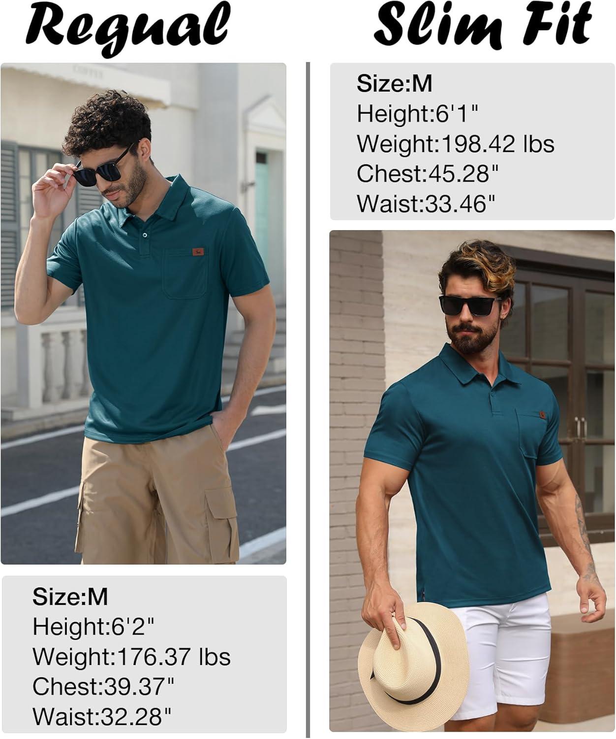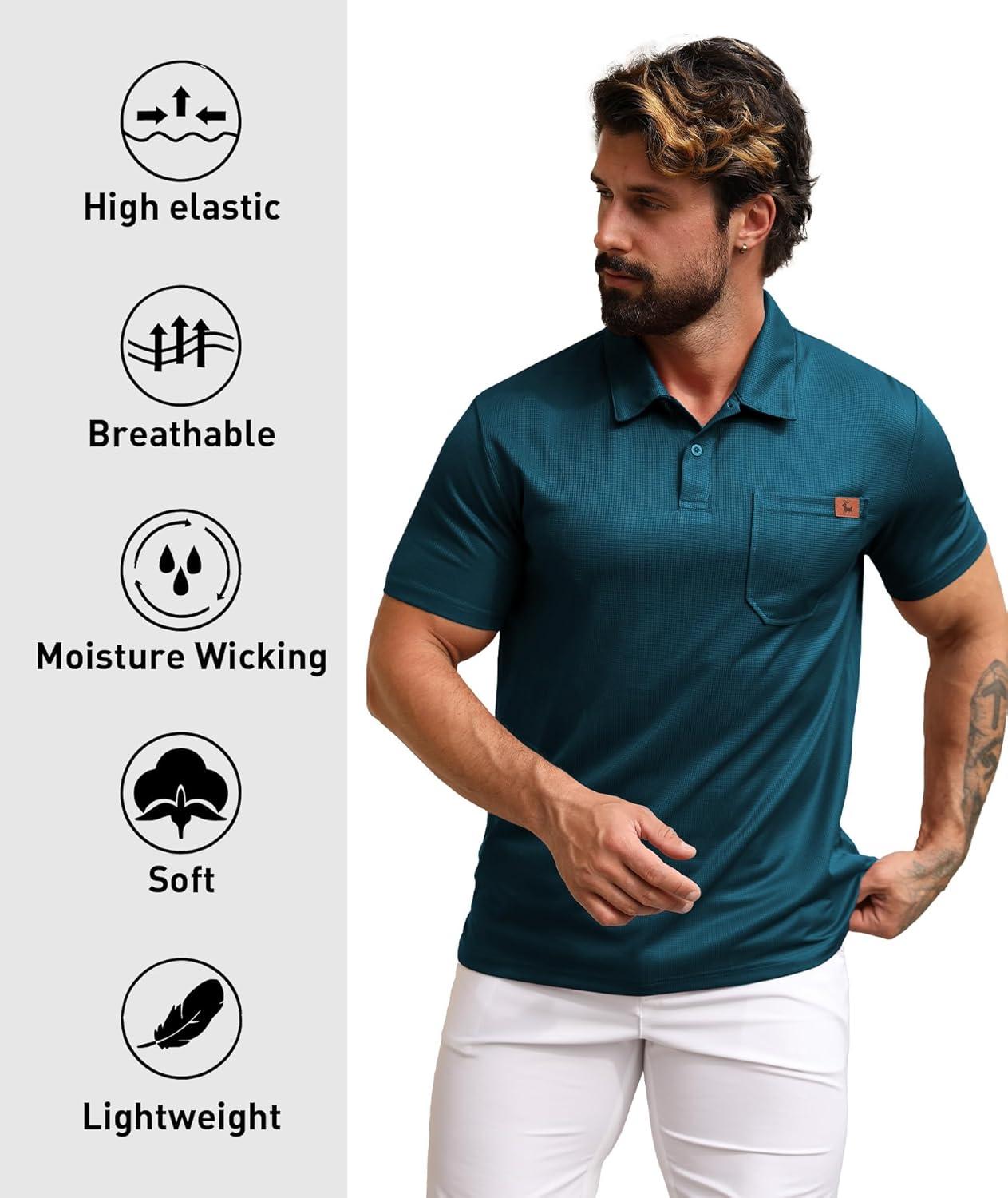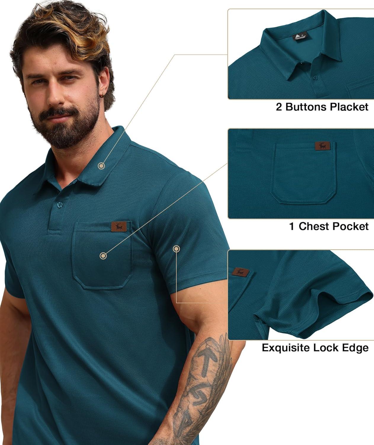 ZITY Mens Waffle Polo Shirts Casual Short Sleeve Texture Polo for Men Moisture Wicking Collared T-Shirt with Pocket(Dark Teal Blue)