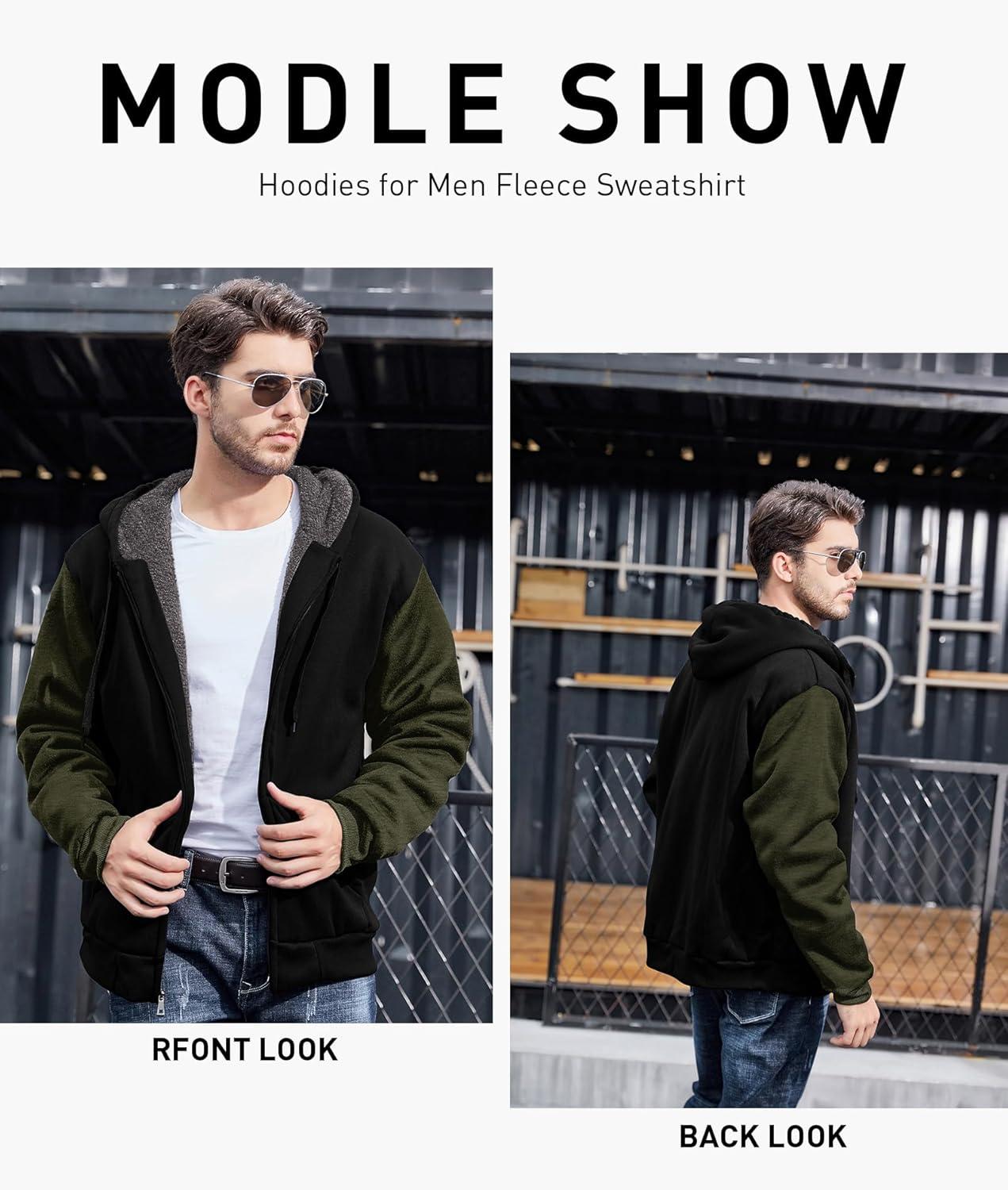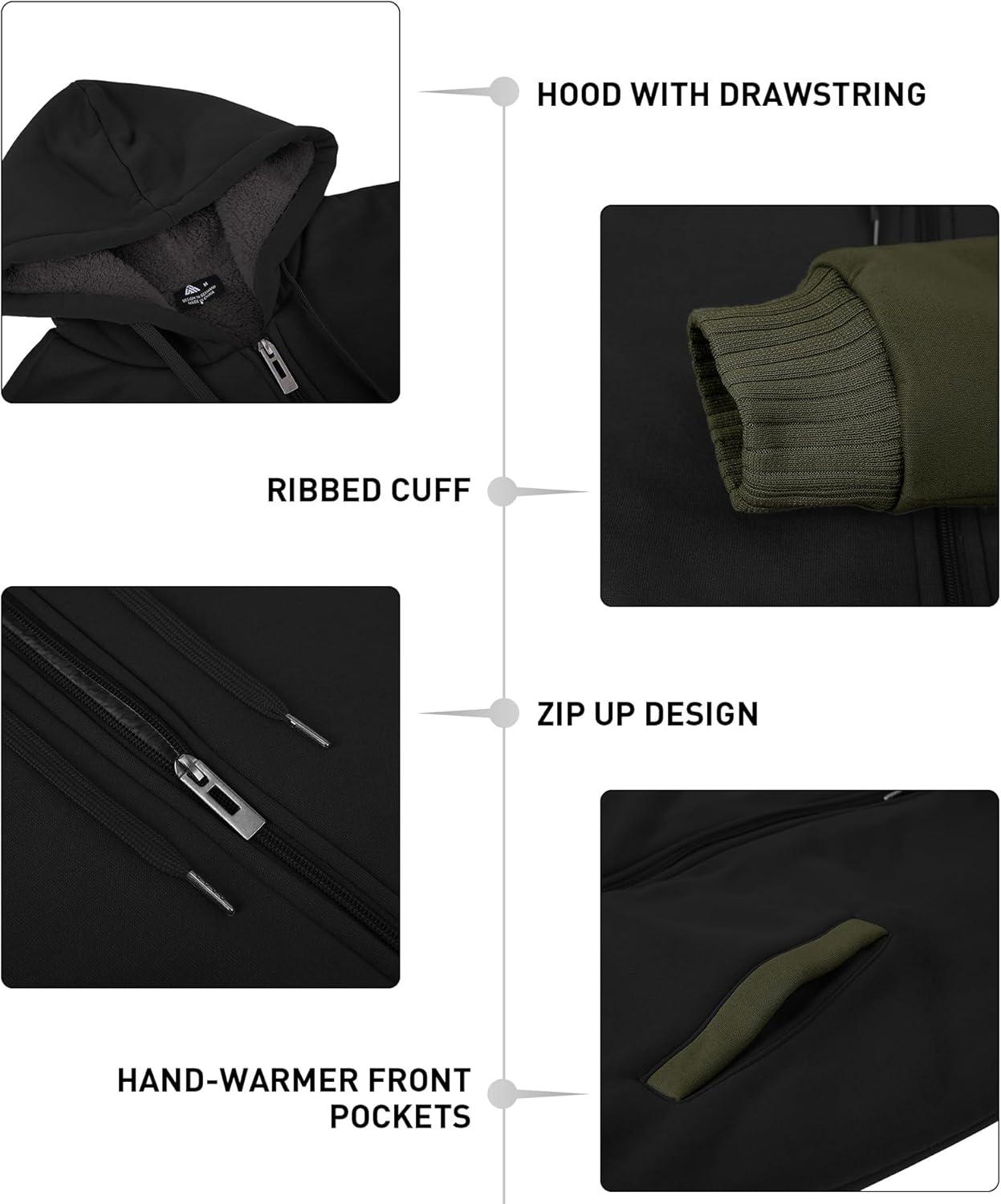 ZITY Men’s Zip Up Hoodie Heavyweight Winter Sweatshirt Fleece Sherpa Lined Warm Jacket(Black/Dark Green)