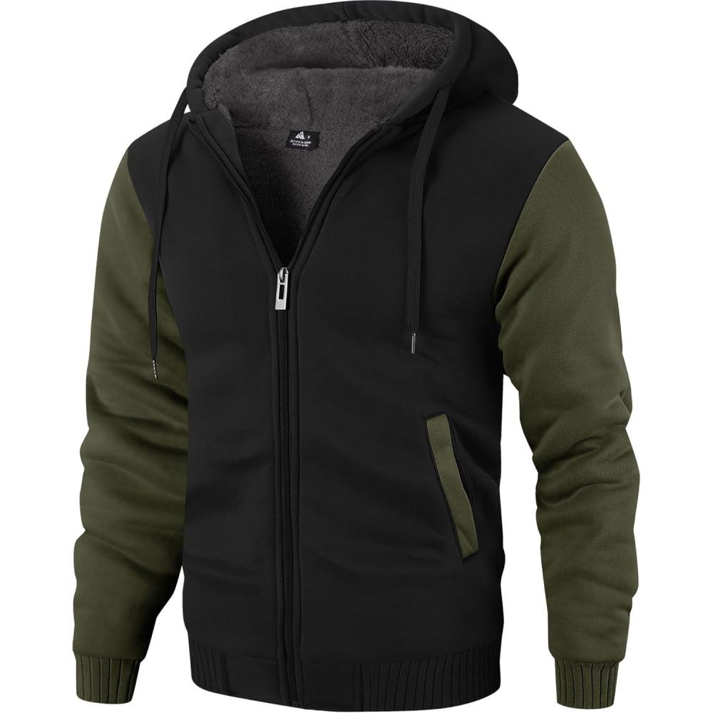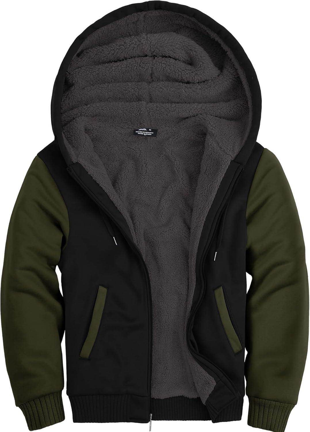 ZITY Men's Zip Up Hoodie Heavyweight Winter Sweatshirt Fleece Sherpa Lined Warm Jacket(Black/Dark Green)