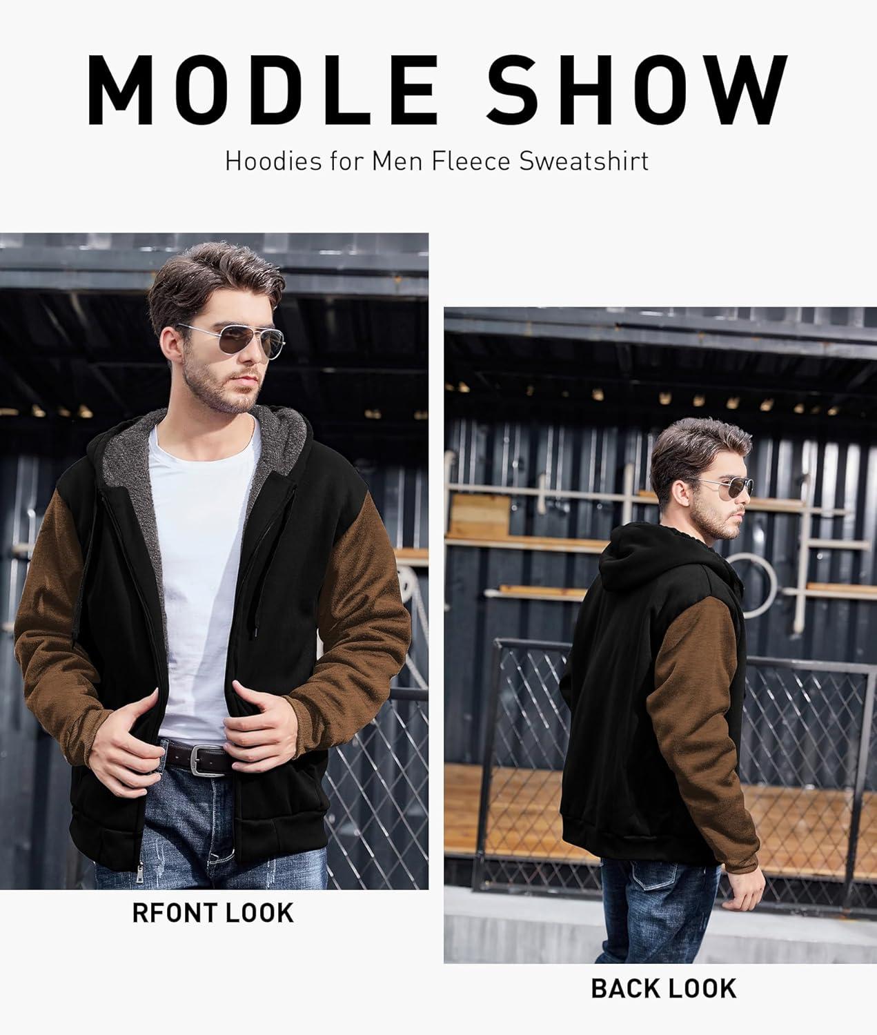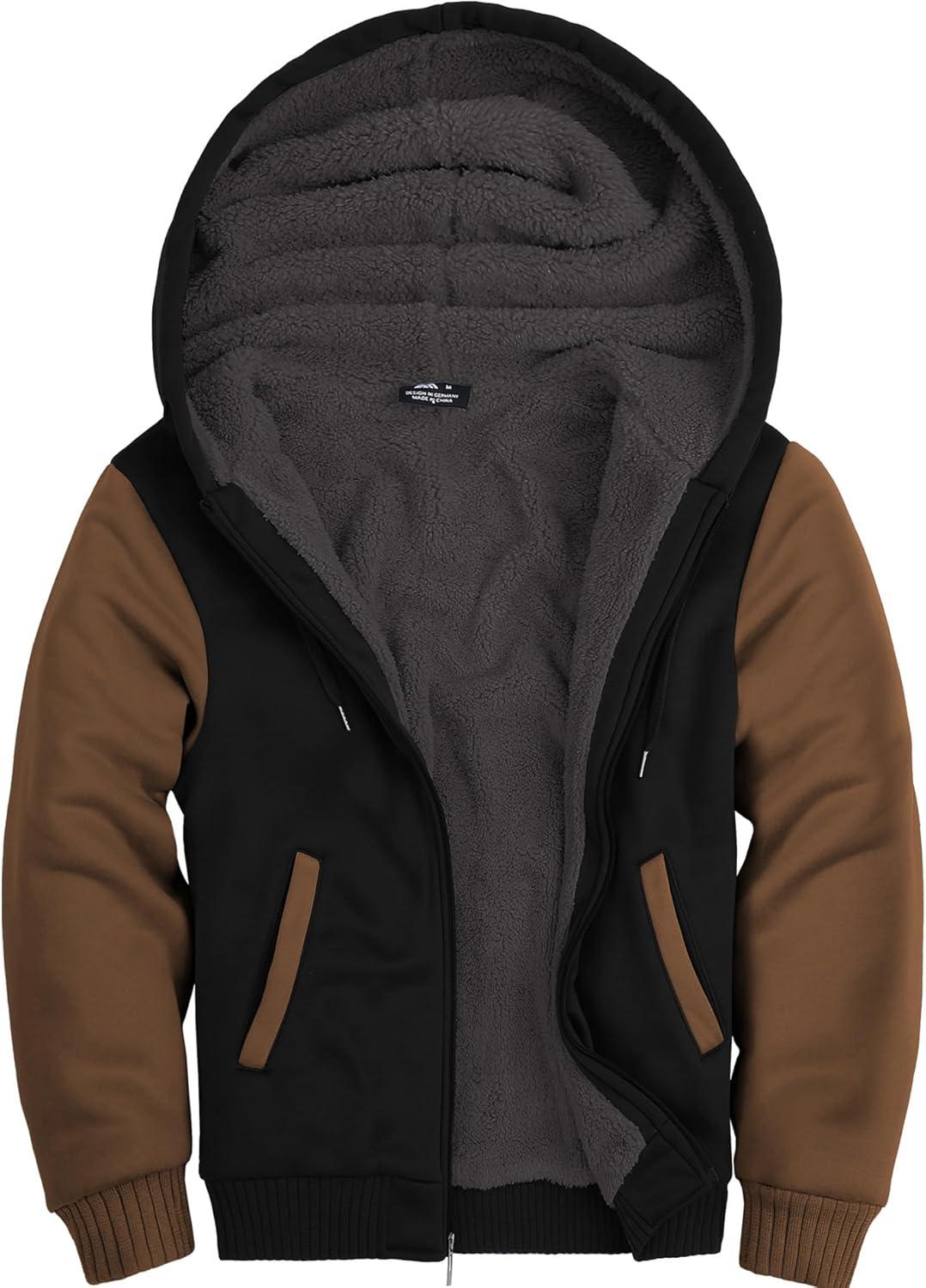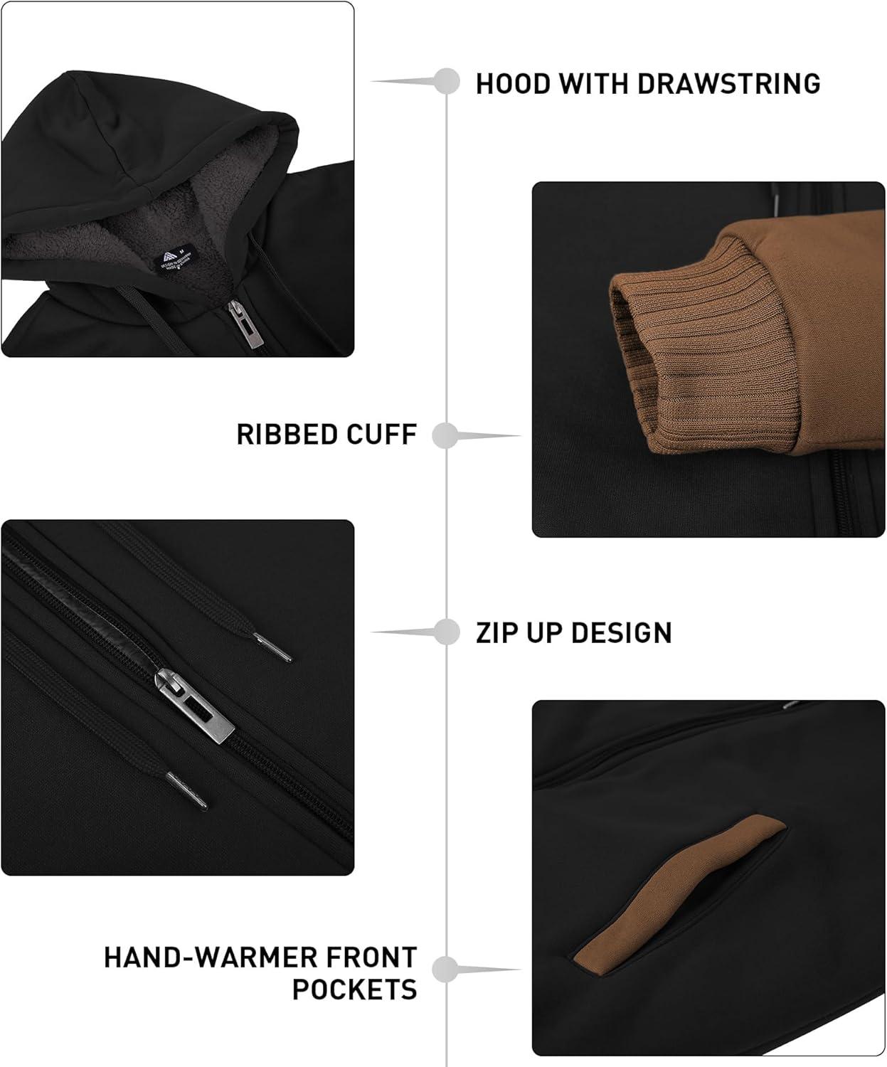 ZITY Men’s Zip Up Hoodie Heavyweight Winter Sweatshirt Fleece Sherpa Lined Warm Jacket(Black/Khaki)