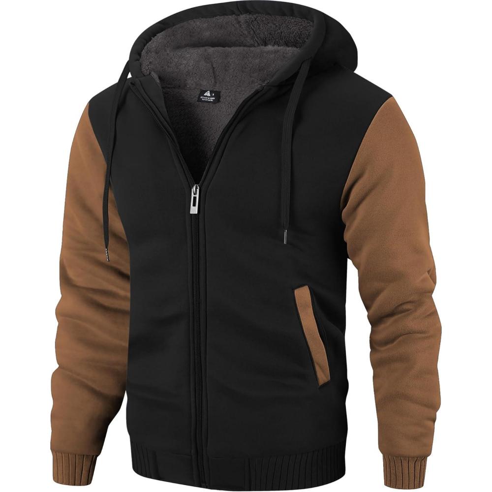 ZITY Men's Zip Up Hoodie Heavyweight Winter Sweatshirt Fleece Sherpa Lined Warm Jacket(Black/Khaki)