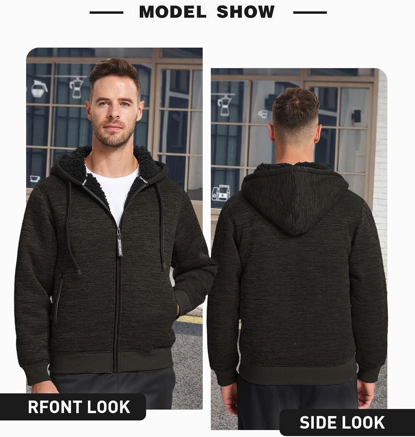 ZITY Men's Zip Up Hoodie Heavyweight Winter Sweatshirt Fleece Sherpa Lined Warm Jacket(Heather Darkbrown)