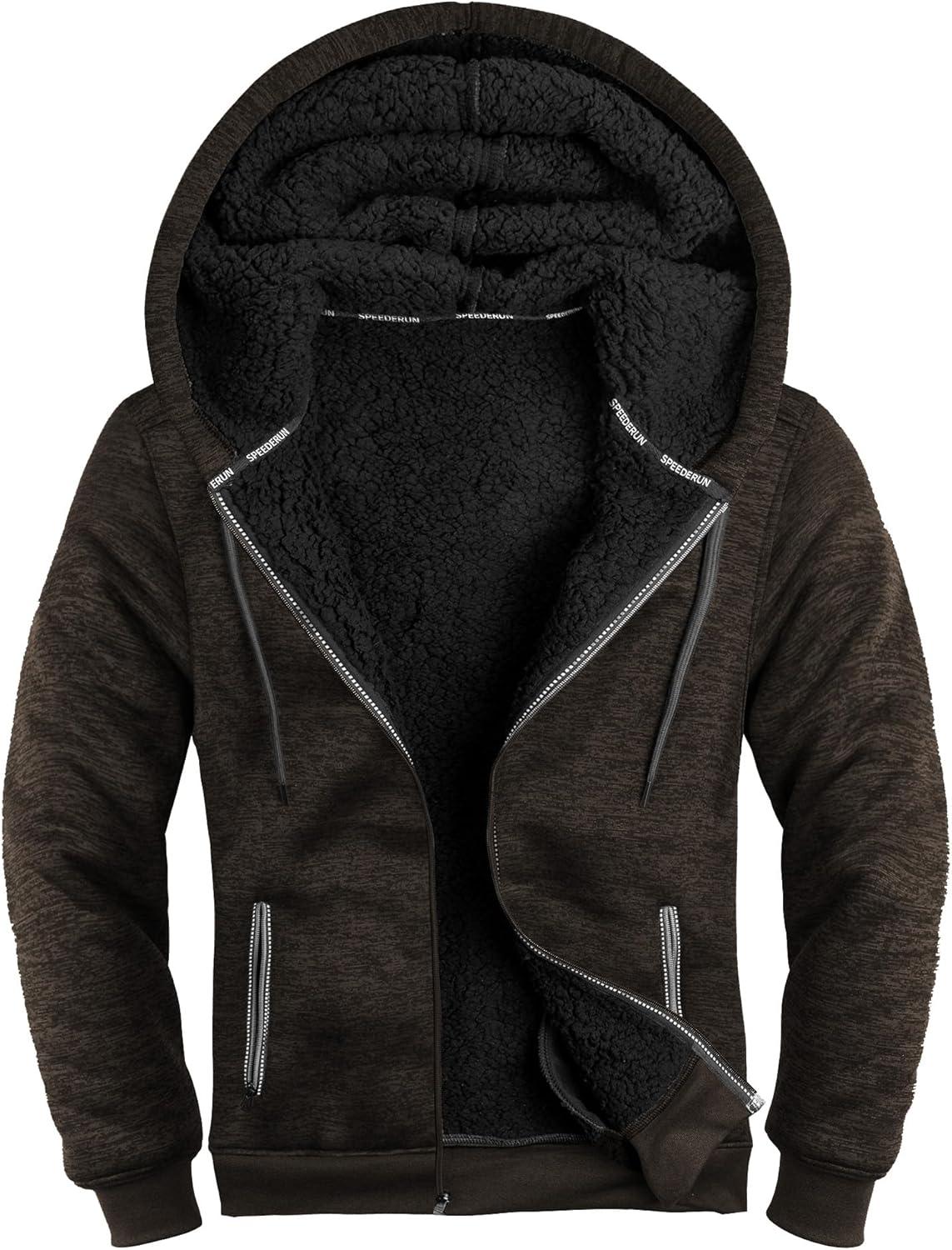 ZITY Men’s Zip Up Hoodie Heavyweight Winter Sweatshirt Fleece Sherpa Lined Warm Jacket(Heather Brown)