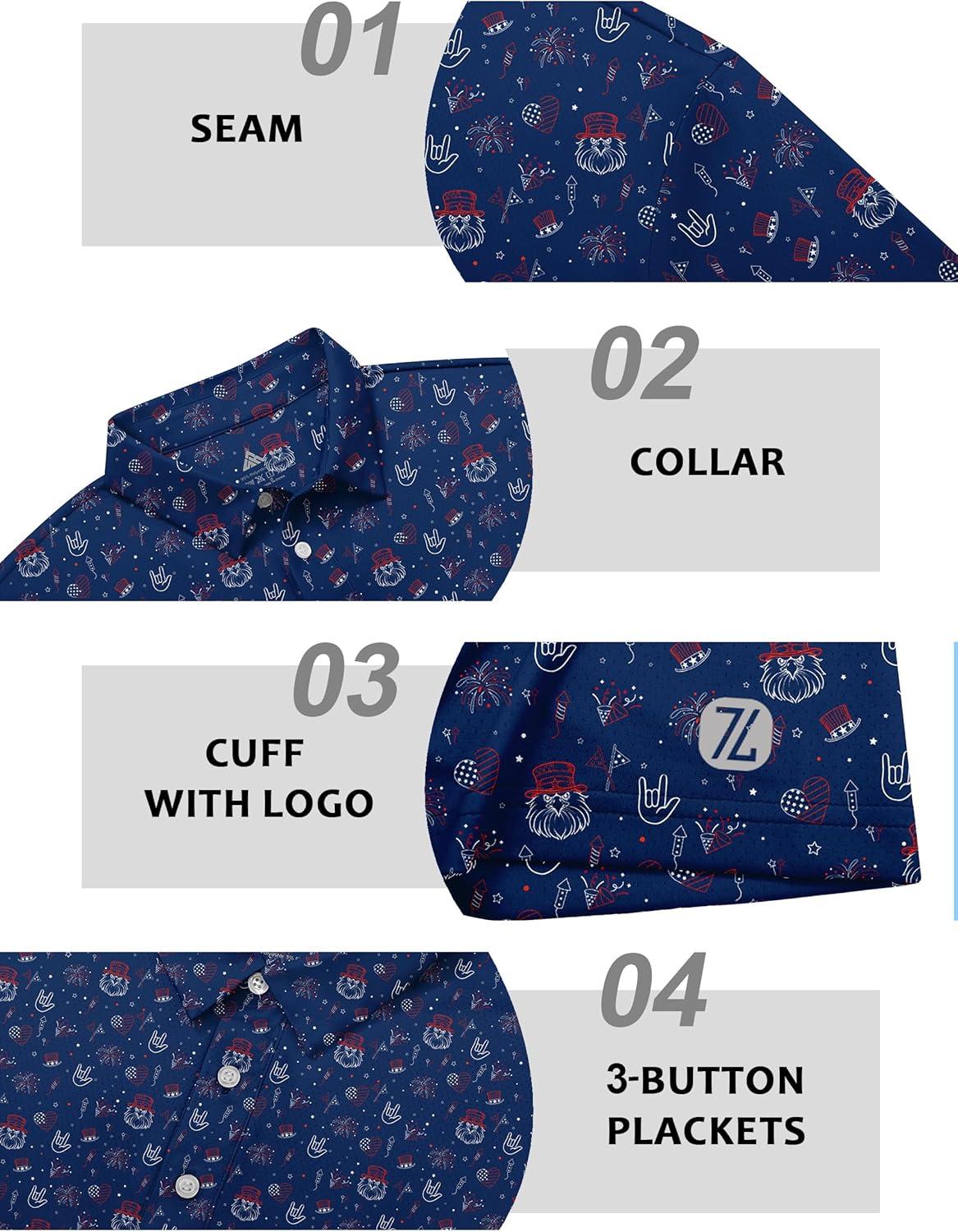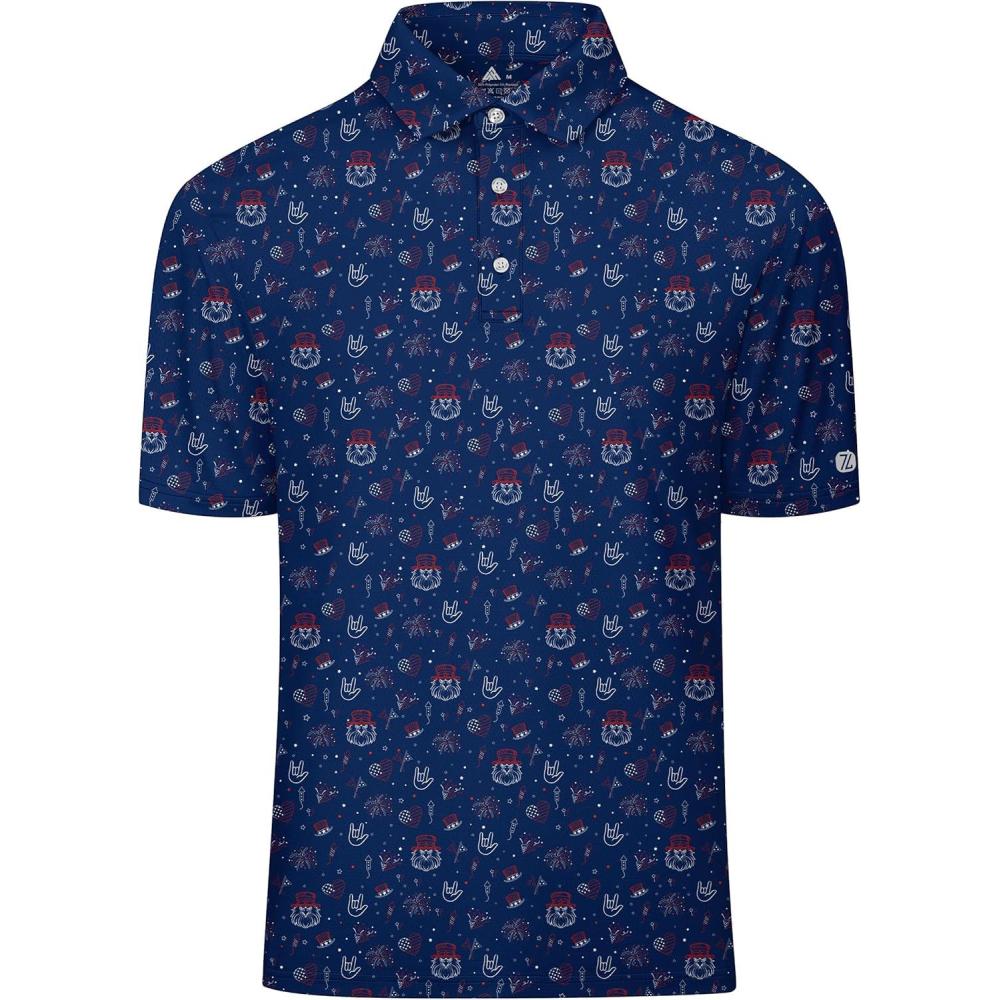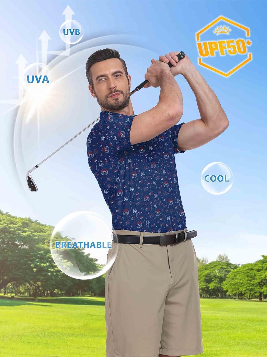 ZITY Select Golf Shirts for Men Short Sleeve UPF 50+ Print Performance Polo Moisture Wicking Funny Golf Collared Shirts(Navy Festival Party)