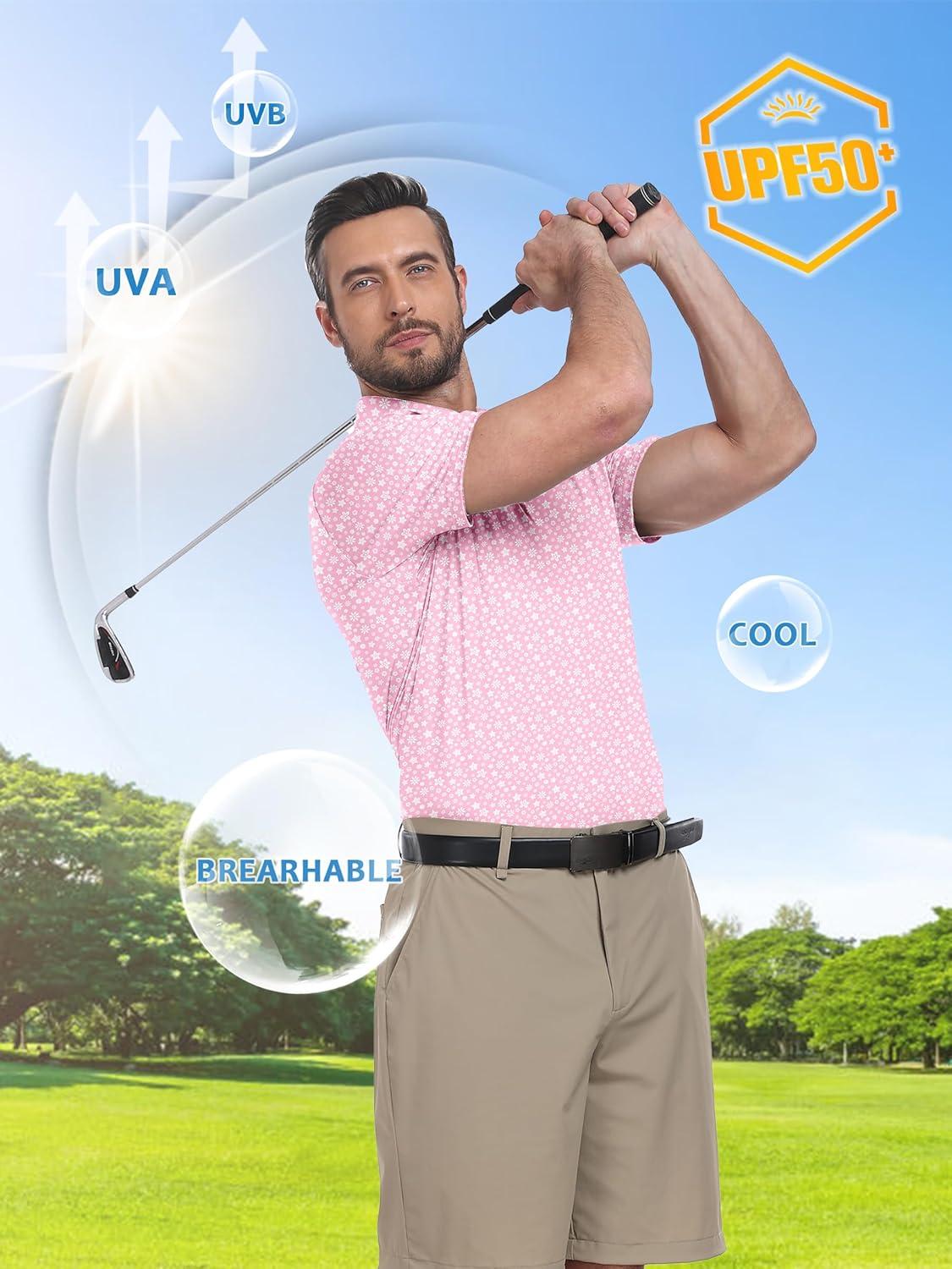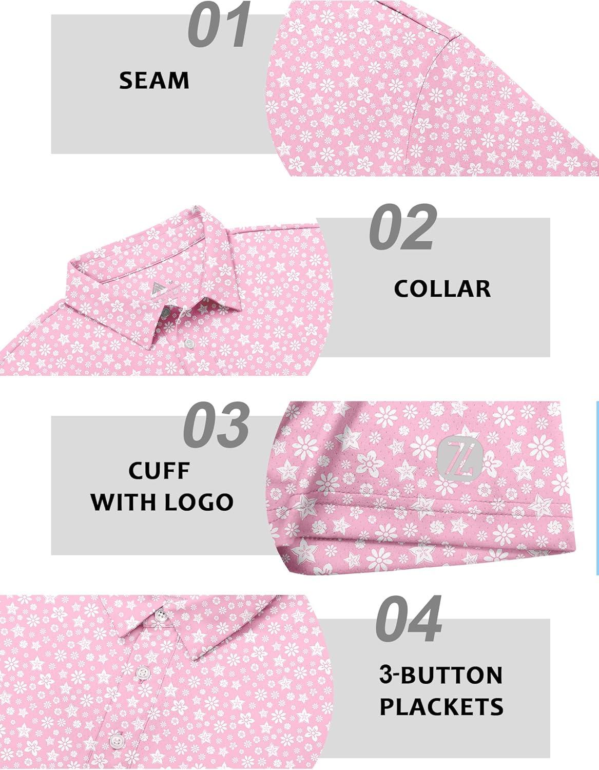 ZITY Select Golf Shirts for Men Short Sleeve UPF 50+ Print Performance Polo Moisture Wicking Funny Golf Collared Shirts(Pink Flower)